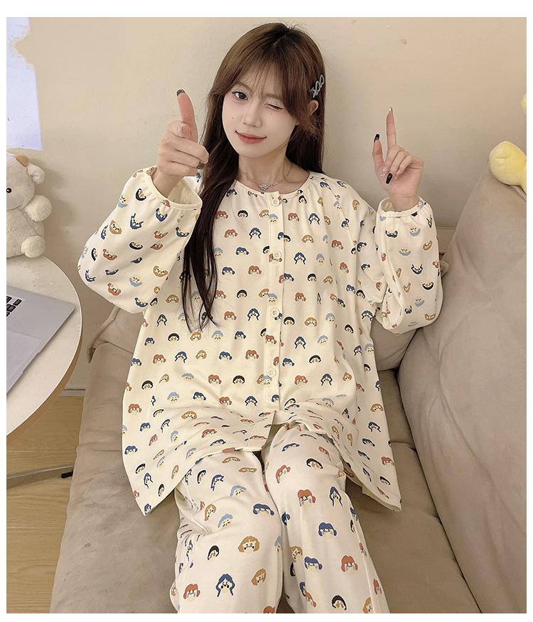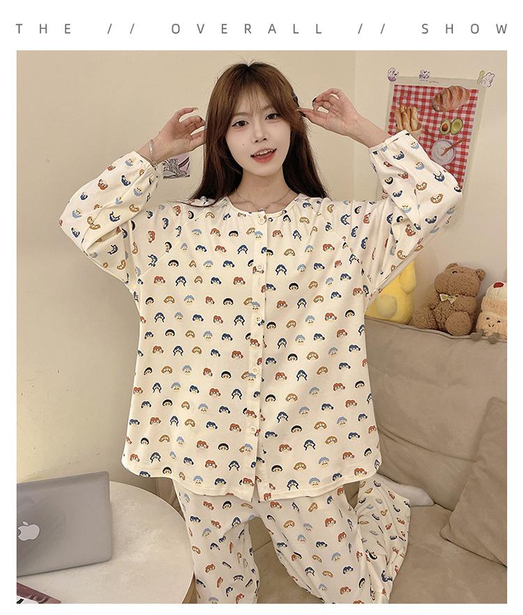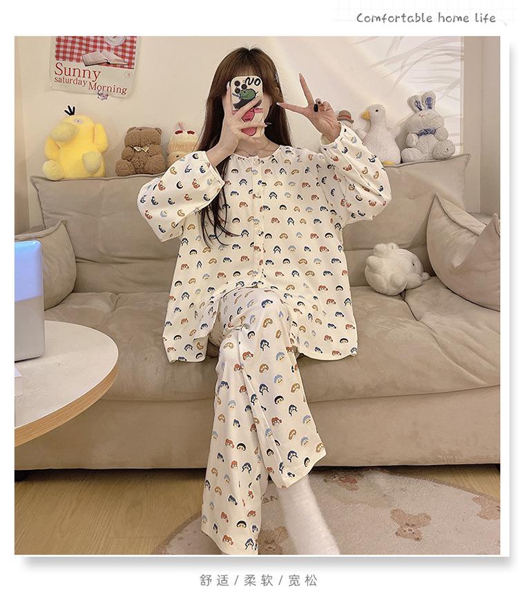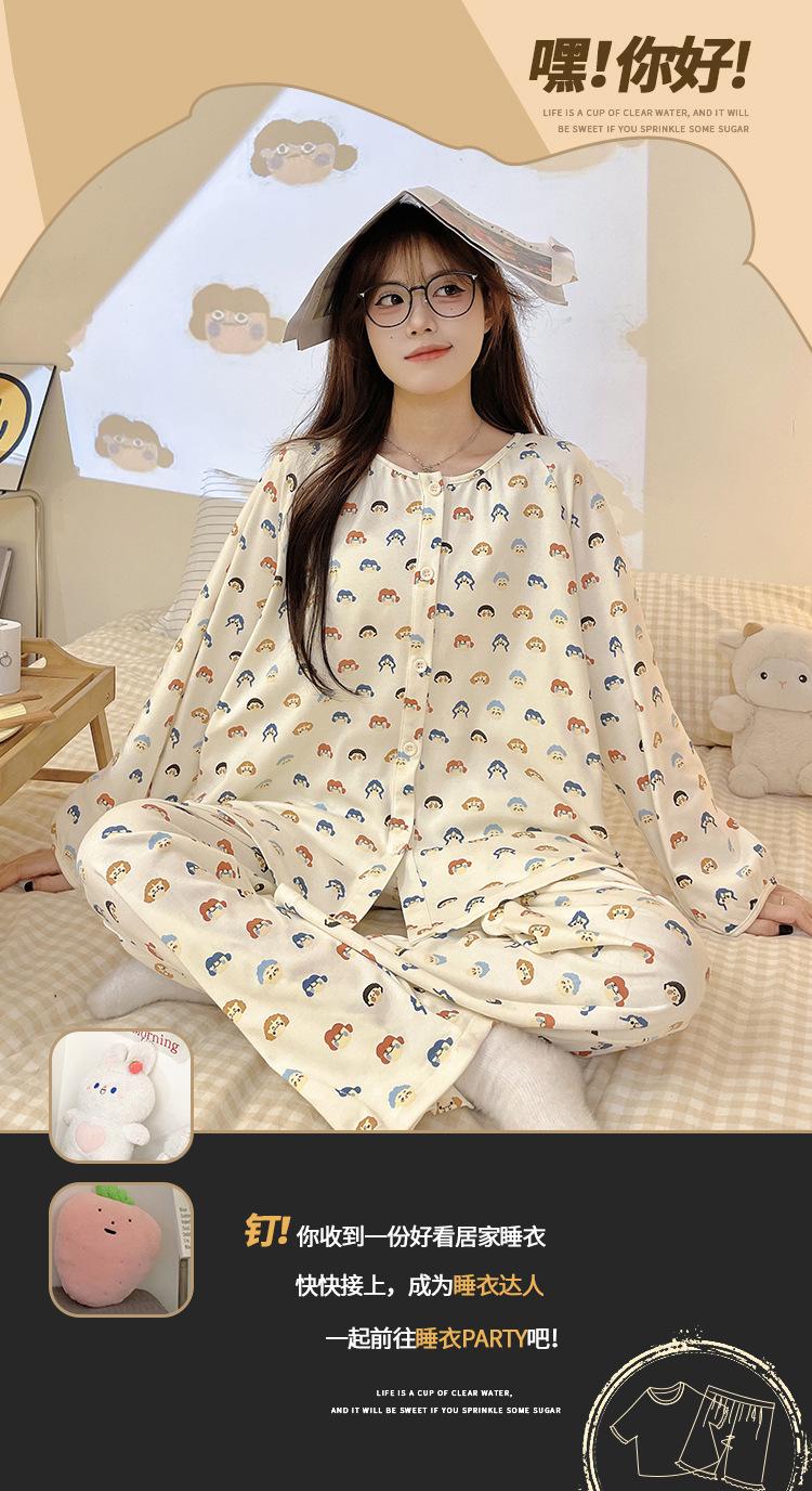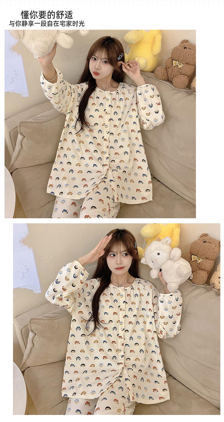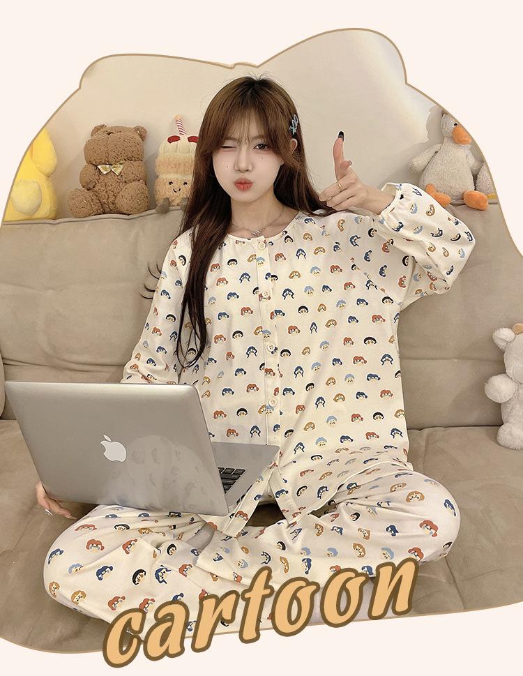Pijama de algodón para mujer, traje de pantalón de manga larga de primavera y otoño, dulce y lindo dibujo animado estilo coreano, ropa de casa para niñas que se puede usar al aire libre
