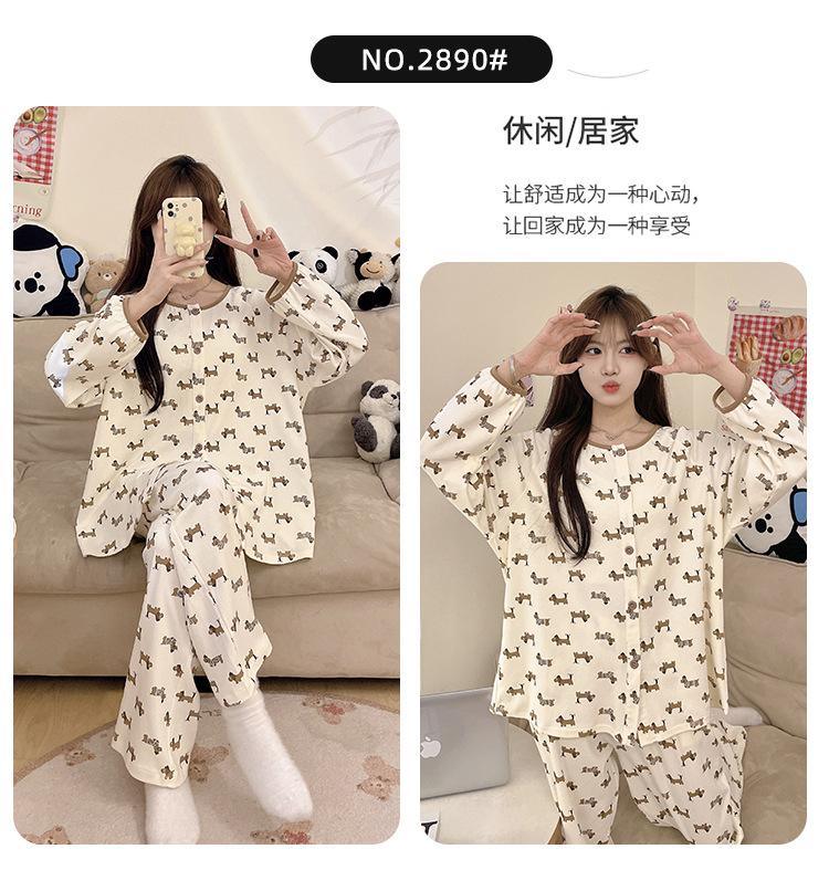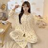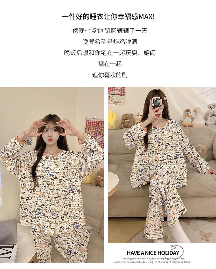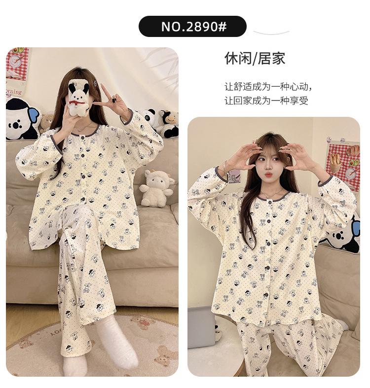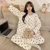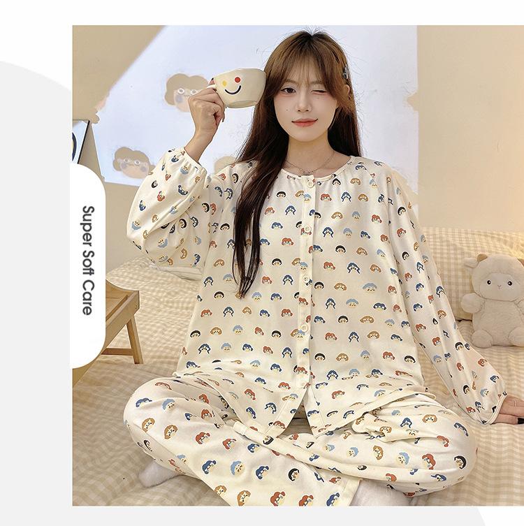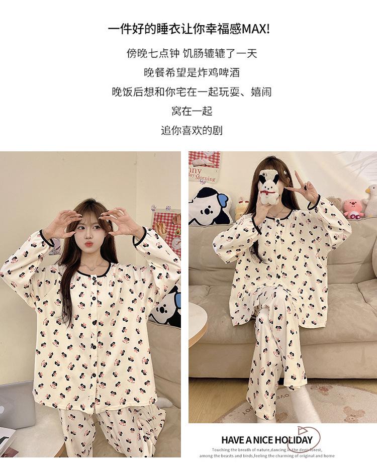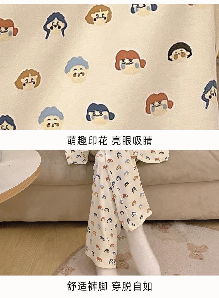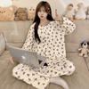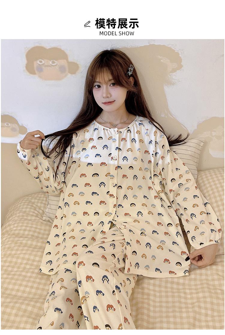 Pijama de algodón para mujer, traje de pantalón de manga larga de primavera y otoño, dulce y lindo dibujo animado estilo coreano, ropa de casa para niñas que se puede usar al aire libre