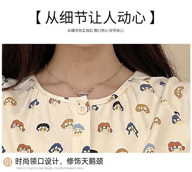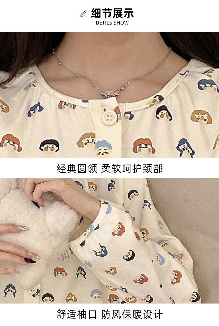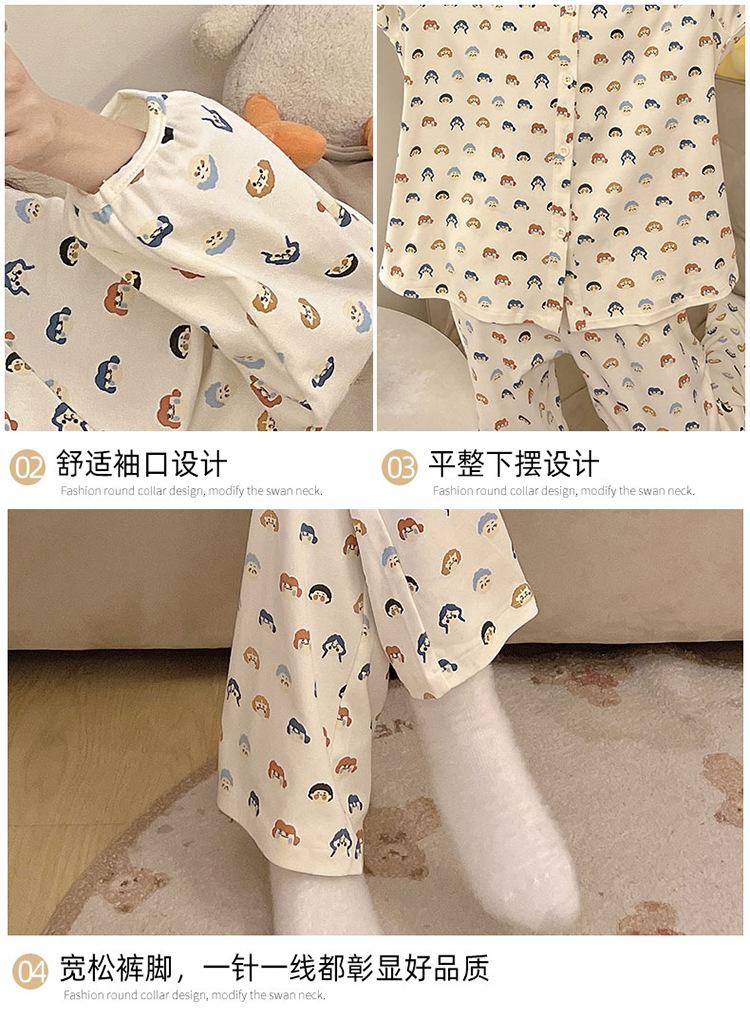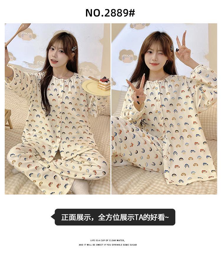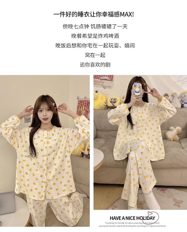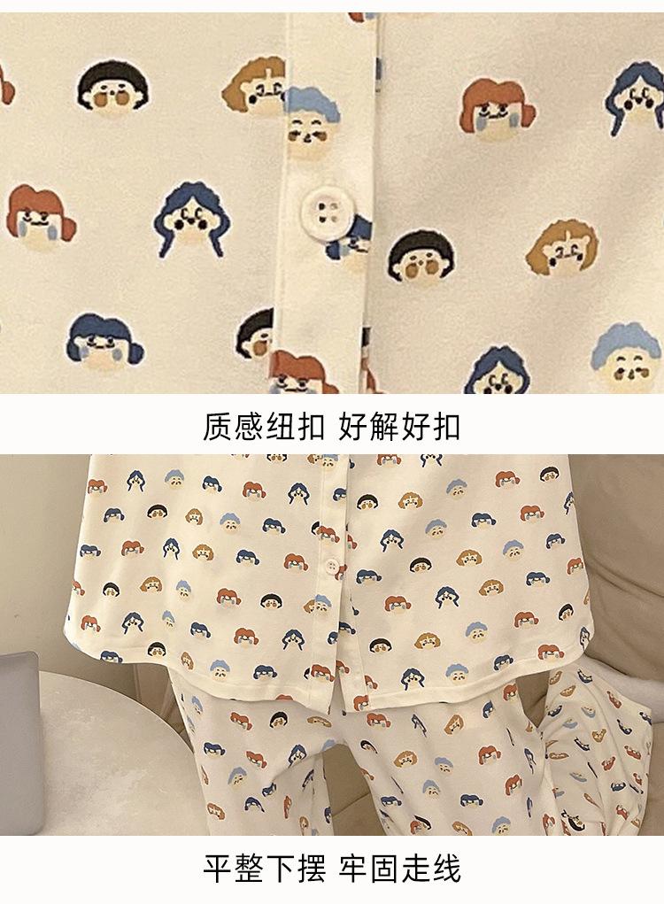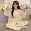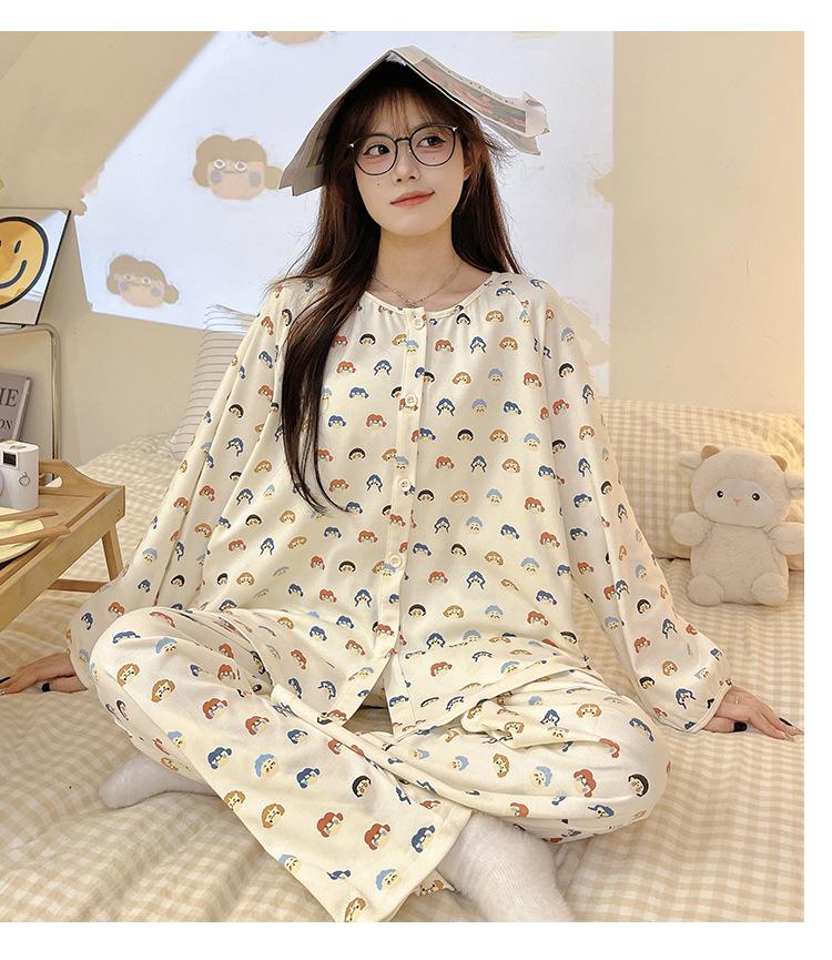 Pijama de algodón para mujer, traje de pantalón de manga larga de primavera y otoño, dulce y lindo dibujo animado estilo coreano, ropa de casa para niñas que se puede usar al aire libre