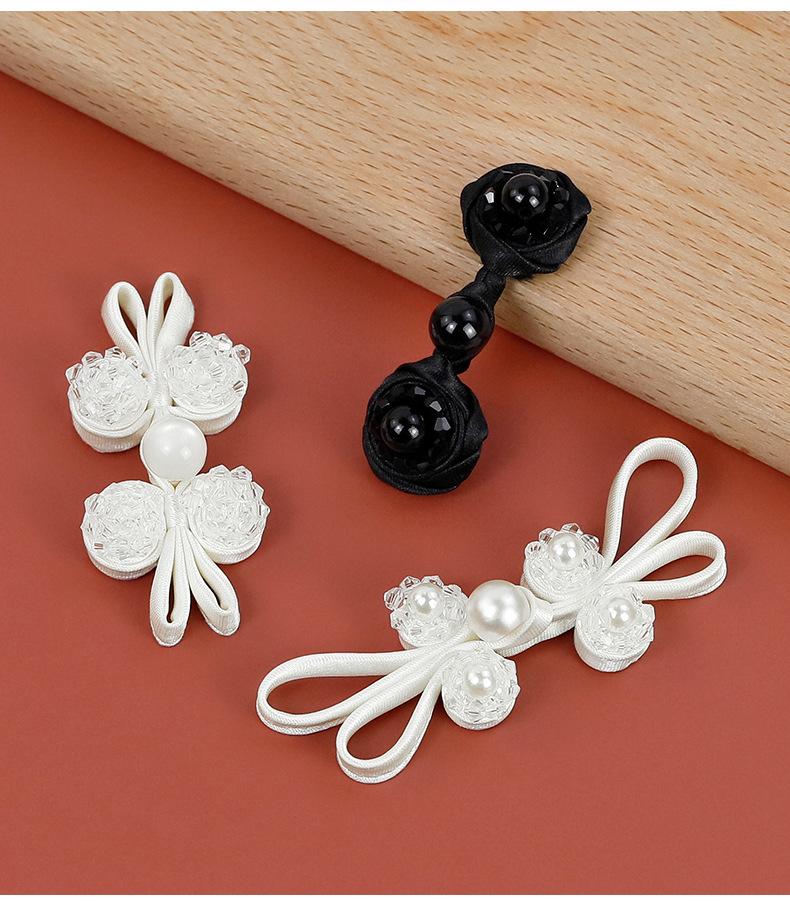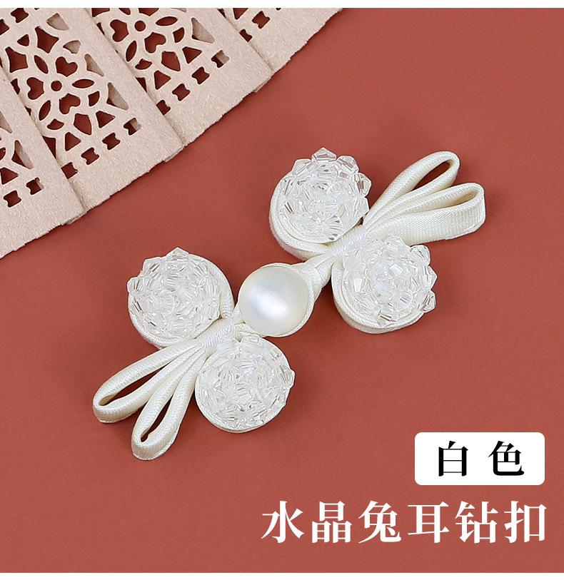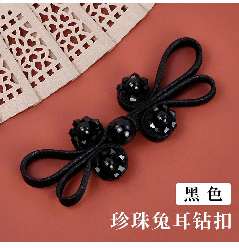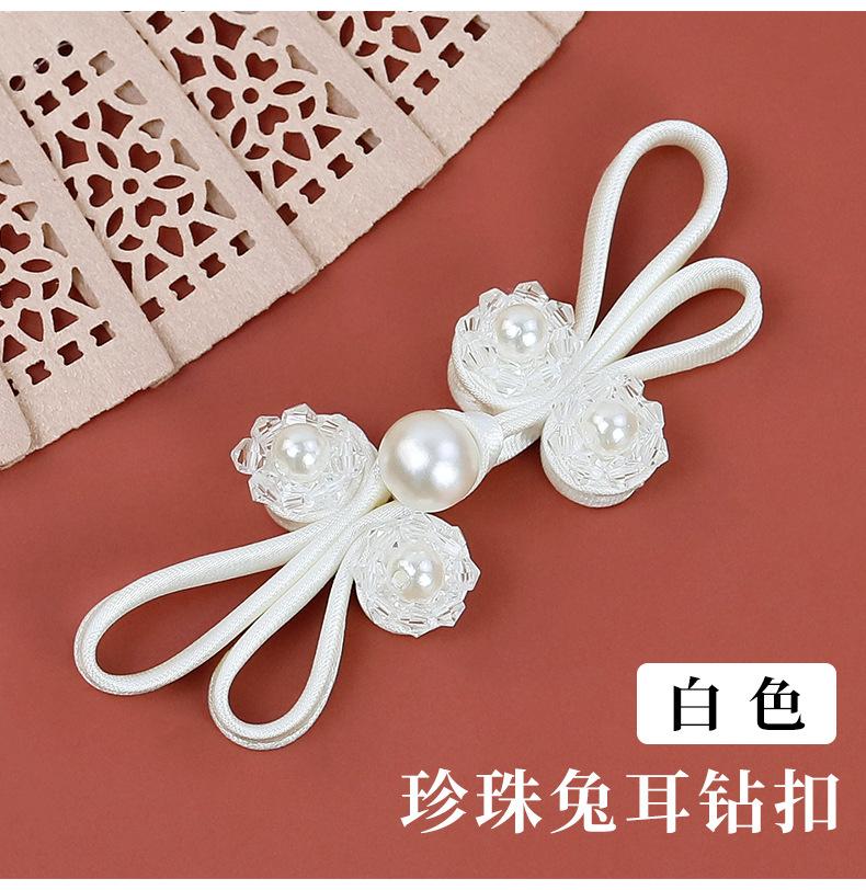Botón de perla de cristal para cheongsam, botón chino hecho a mano con orejas de conejo rosa, botón decorativo, accesorios de ropa vintage.