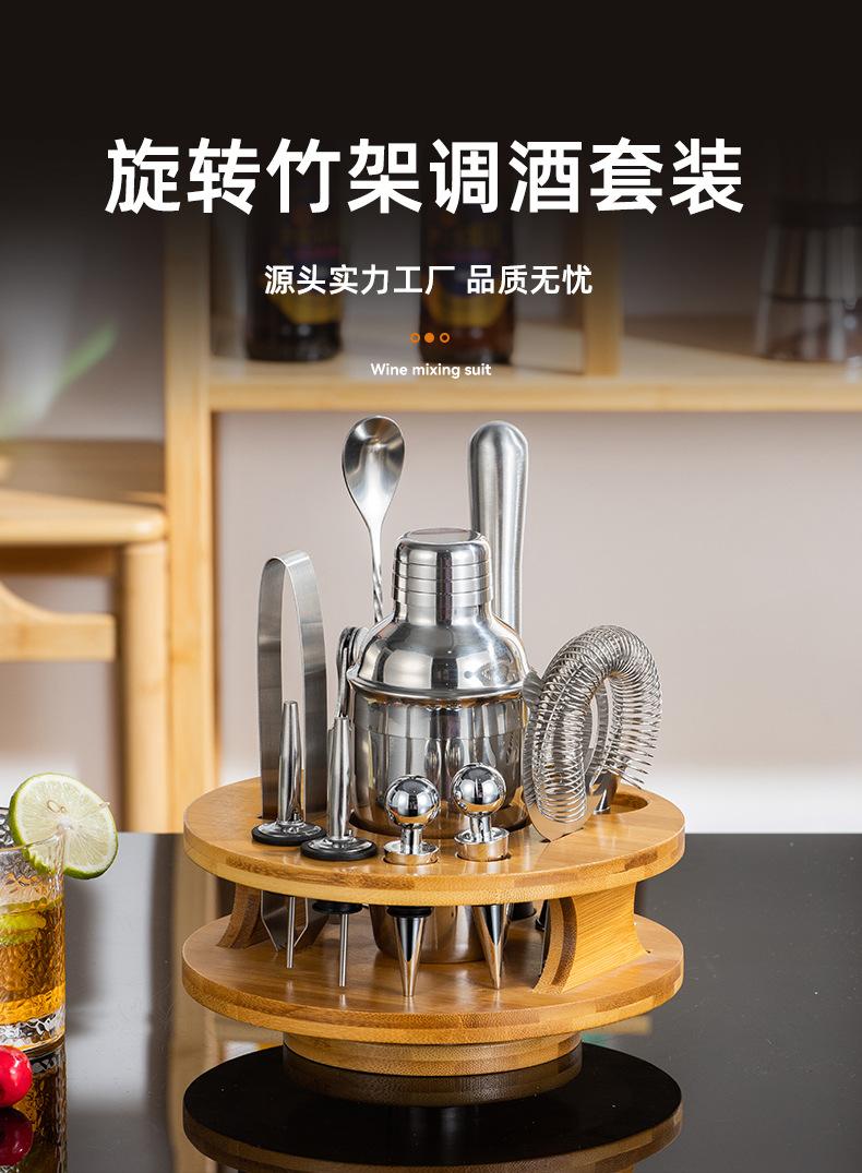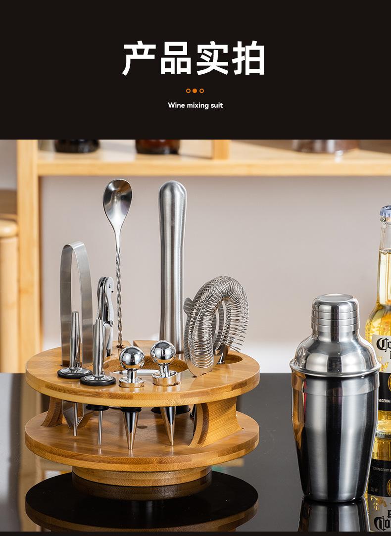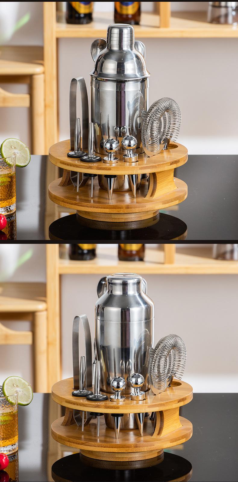 Nuevo Producto Transfronterizo Set de Mezclador de Acero Inoxidable de 12 Piezas Mezclador de Cócteles con Base Giratoria de Bambú
