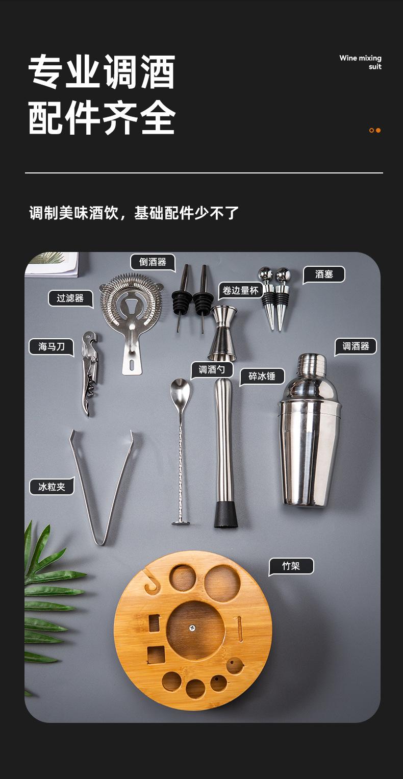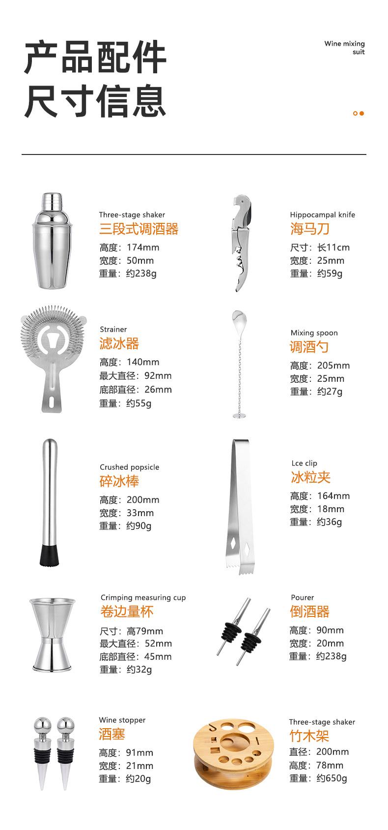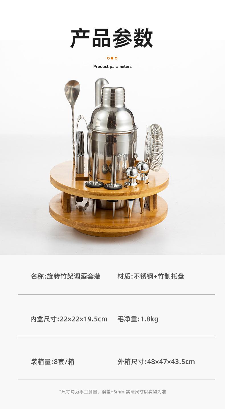 Nuevo Producto Transfronterizo Set de Mezclador de Acero Inoxidable de 12 Piezas Mezclador de Cócteles con Base Giratoria de Bambú