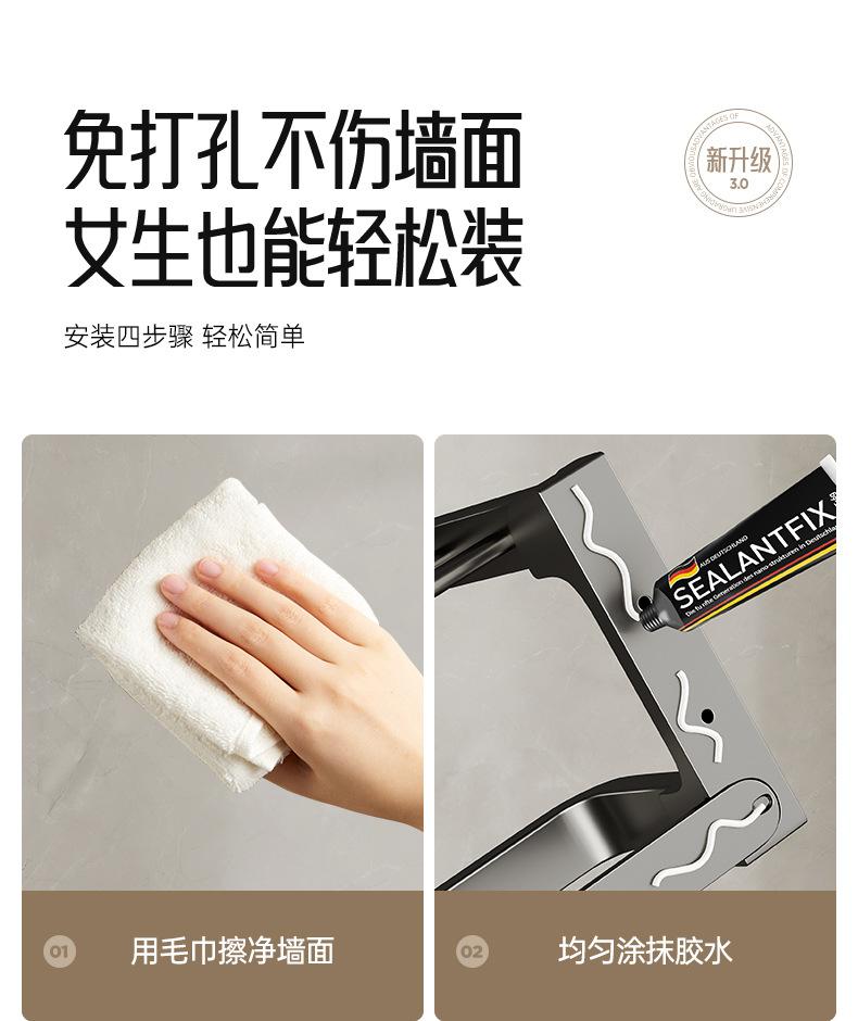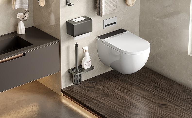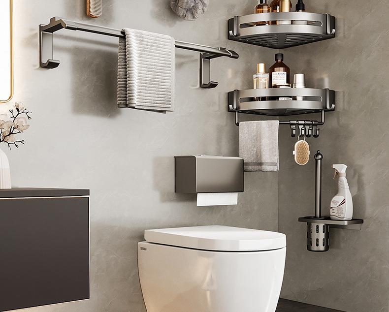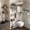 Toallero de Aluminio Espacial Gunmetal, Estante de Almacenamiento para Baño sin Perforaciones, Estante Integrado para Baño, Toallero para Inodoro y Baño