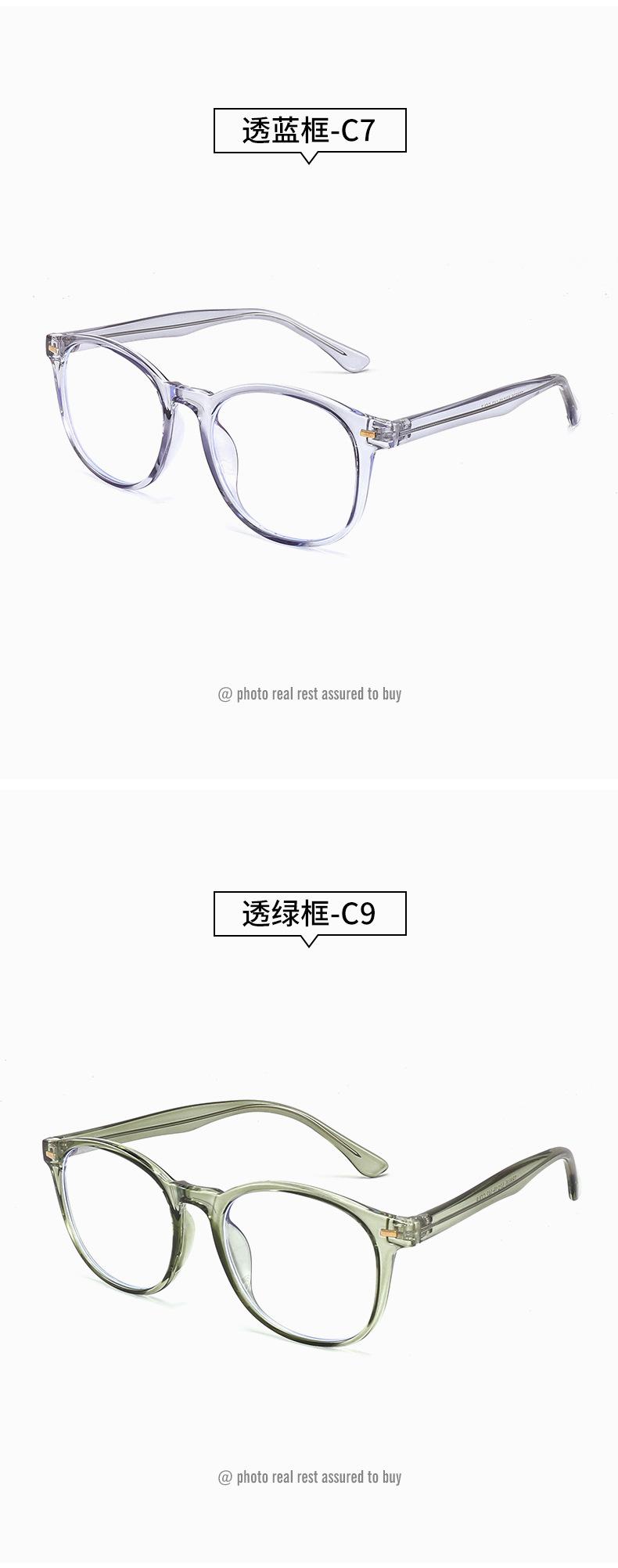 Bright Black Frame-C1, Sand black frame-C2, Transparent tea frame-c3, Transparent powder frame-c5, Gray throug...