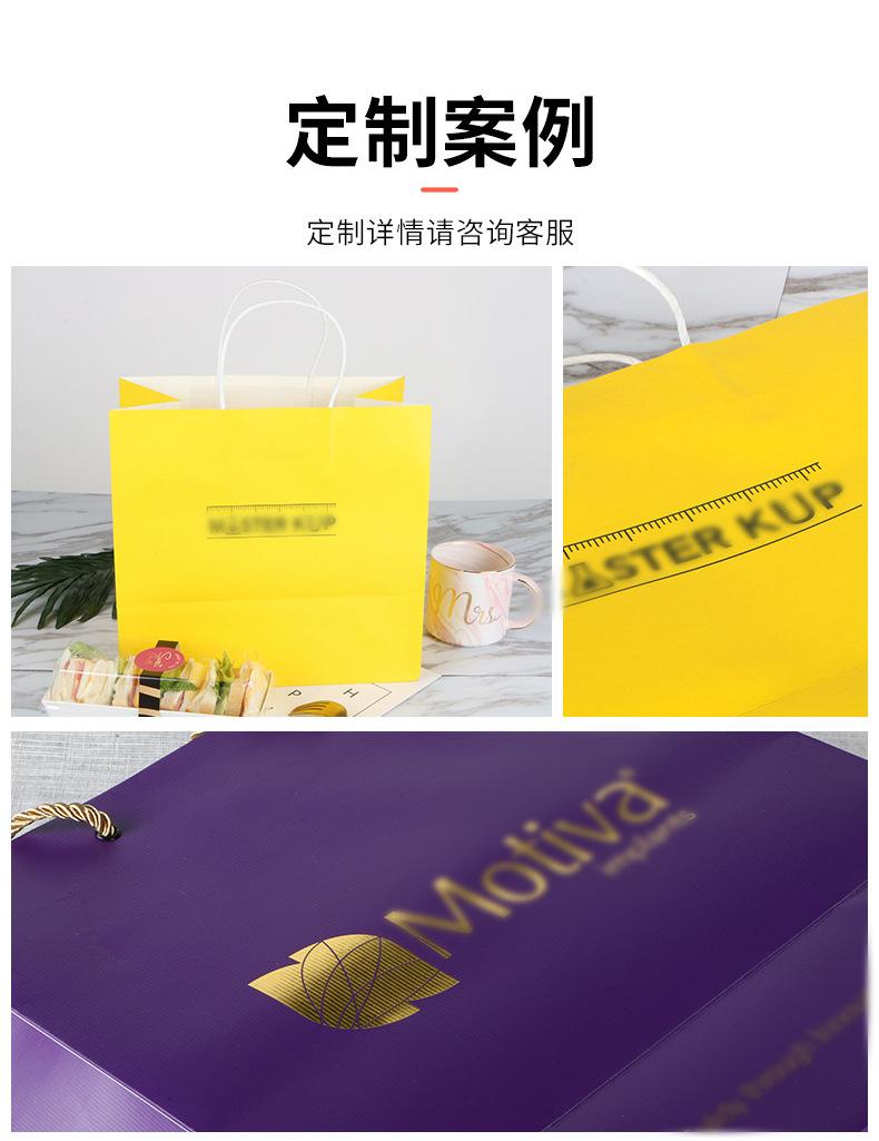 Bolsa de papel kraft amarilla para compras, venta al por mayor, desechable, para llevar, embalaje, impresión, ropa, regalo