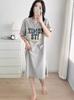Camisón de lactancia de verano fino, top de lactancia, vestido posparto de longitud media, vestido lunar de manga corta.