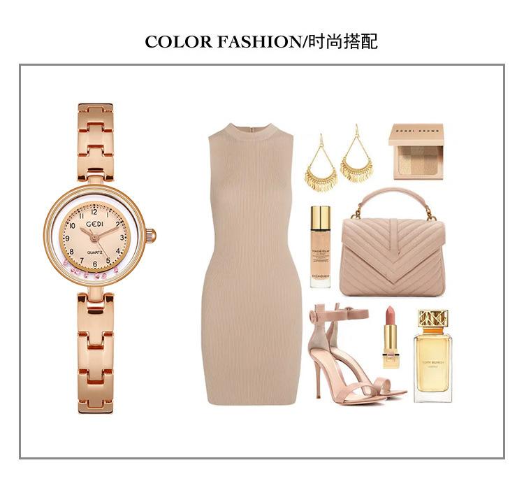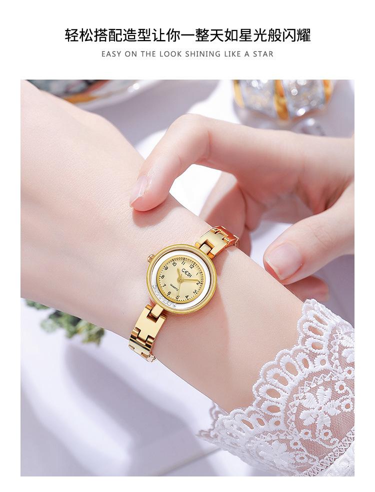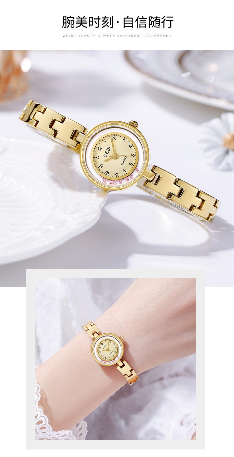 Reloj de Mujer de Aleación de Moda de Lujo Ligero Goldie Reloj de Arena Movediza de Disco Pequeño Impermeable Cuarzo Reloj de Mujer al por Mayor