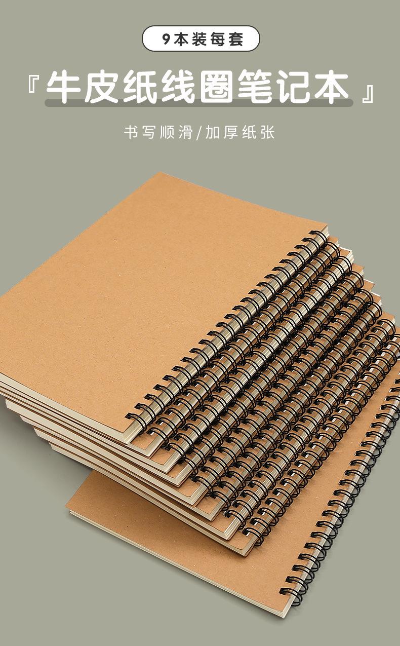 Set de 9 Cuadernos de Espiral de Papel Kraft Vintage, Rayados A5 Engrosados para Práctica, Diario, Planificador