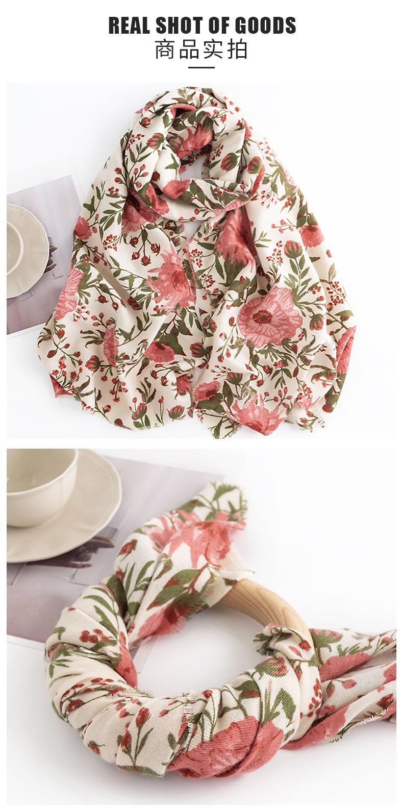 Bufanda de algodón y lino transfronteriza para mujer en primavera y otoño, color puro, bufanda de gasa japonesa y coreana, protección solar, chal cálido, bufanda de cuello simple con borde de piel.