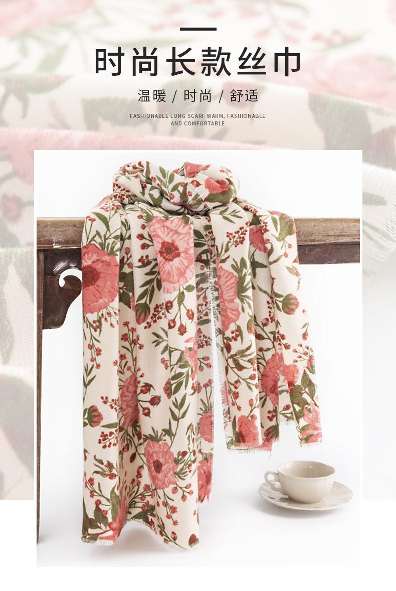 Bufanda larga estampada de imitación de cachemira para mujer, estilo ligero y lujoso, cálida, con flores, ideal para ir al trabajo y proteger el cuello a prueba de frío.