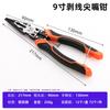 Gray-black handle neutral labor-saving multifunctional 9-inch wire stripping pointed-nose pliers (a box of 12, a piece of 72, 0.25kg