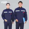 Chaqueta de invierno gruesa, acolchada de algodón, personalizada, con tira reflectante cálida y desmontable, para limpieza de propiedades, obras de construcción, ropa de protección laboral