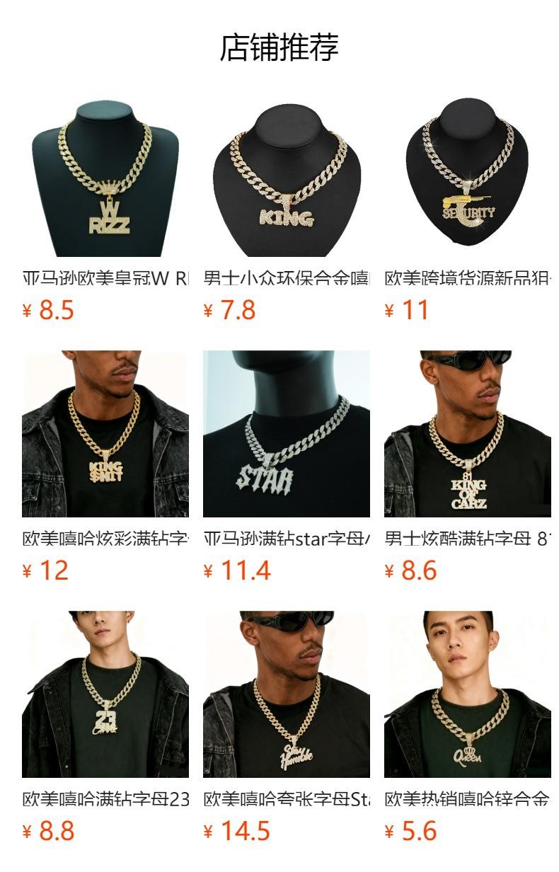 Cadena Cubana de Hip-Hop Más Vendida de Amazon, Marca de Moda, Diamante Completo, Colgante de Letras de Doble Fila, Exclusivamente para Ventas Transfronterizas