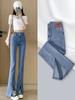 Jeans de Mezclilla con Abertura para Mujer, Nuevo Estilo Primavera y Otoño 2026, de Cintura Alta, Adelgazantes, con Abertura, de Largo hasta el Suelo, Ligeramente Acampanados, Estilo Delgado de Verano