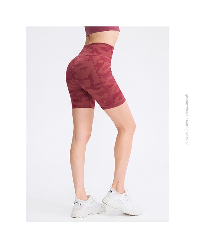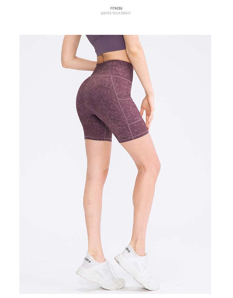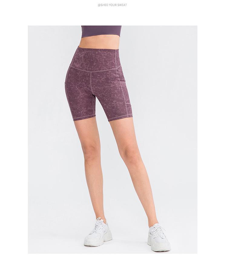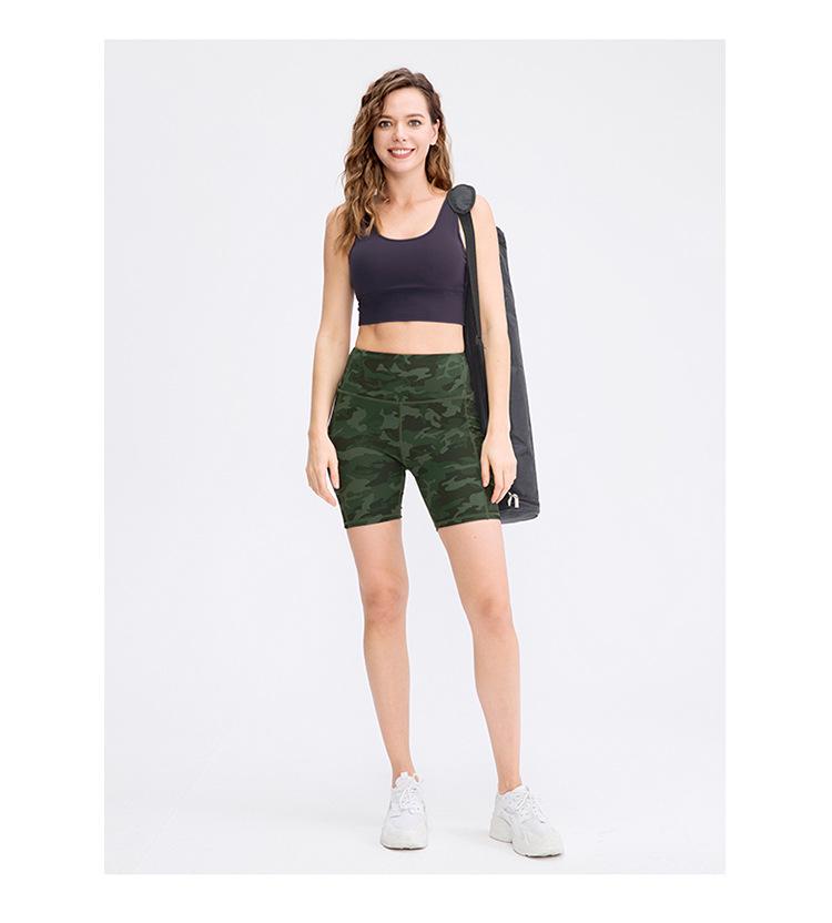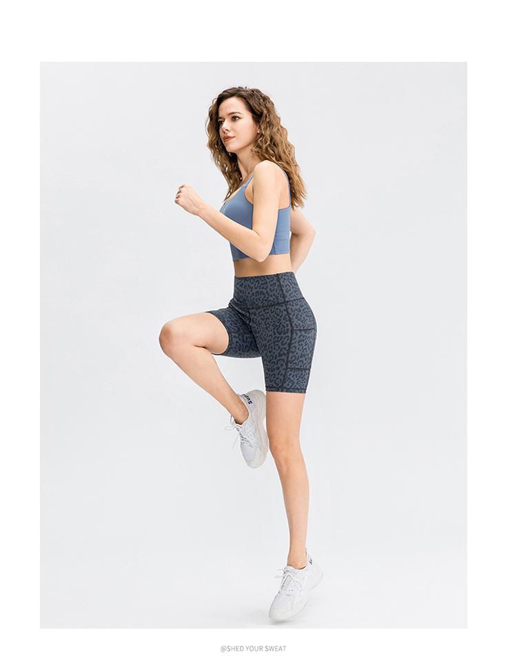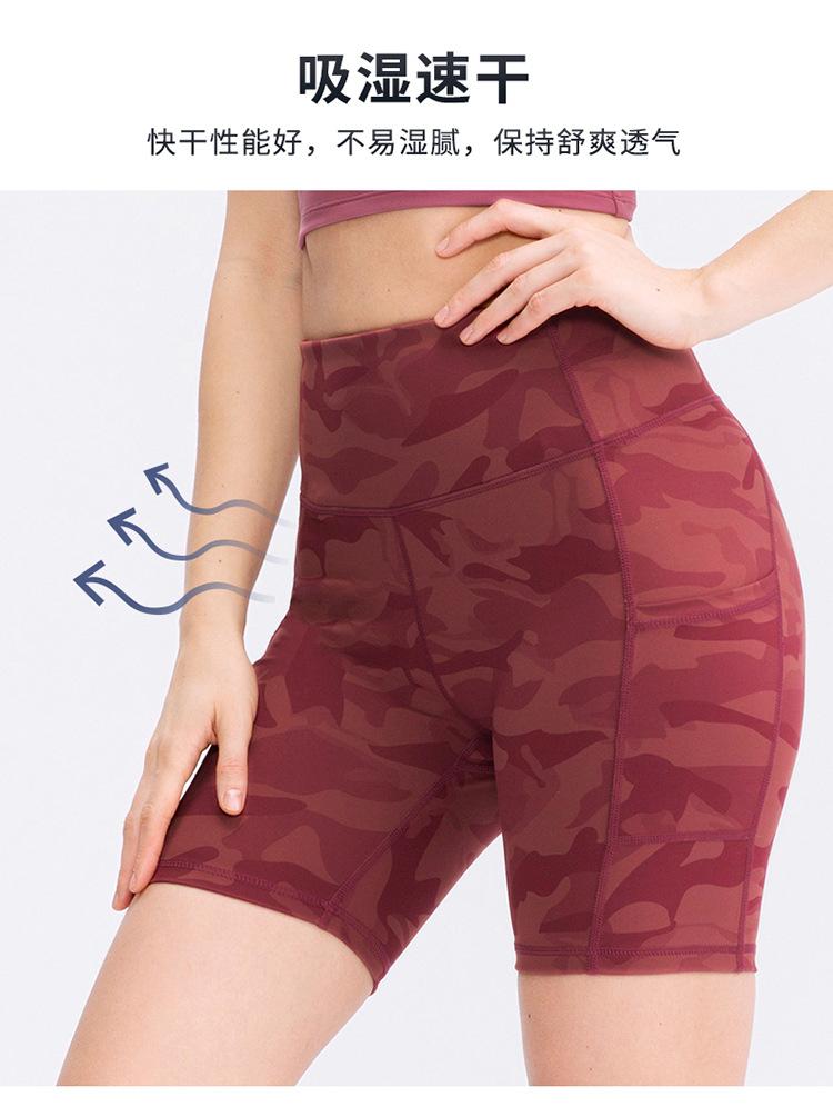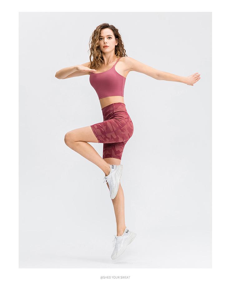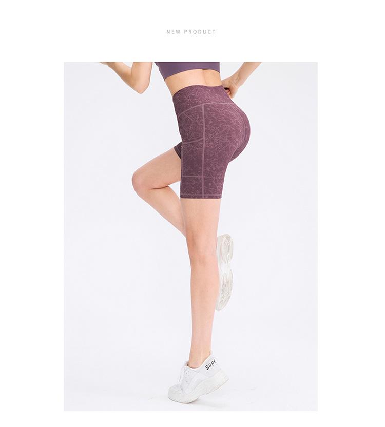 Pantalones cortos de yoga personalizados con estampado nude para mujer, ajustados, elásticos y de secado rápido, para fitness y deportes.