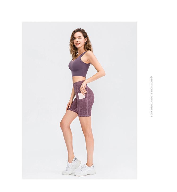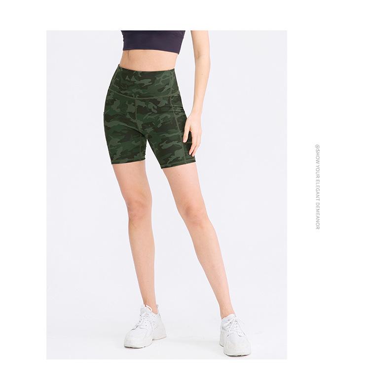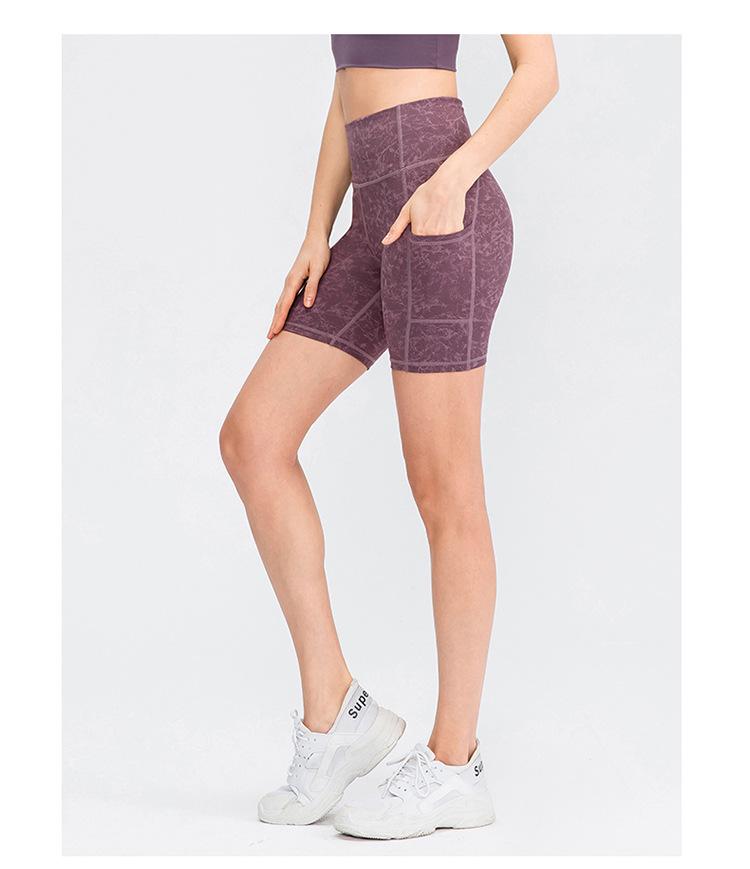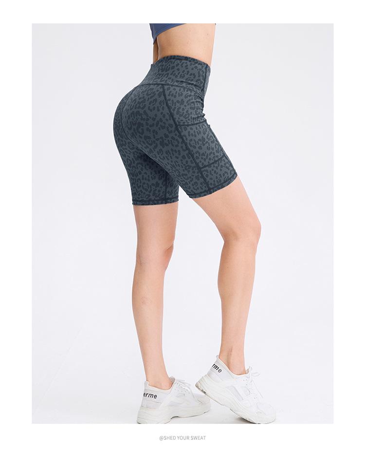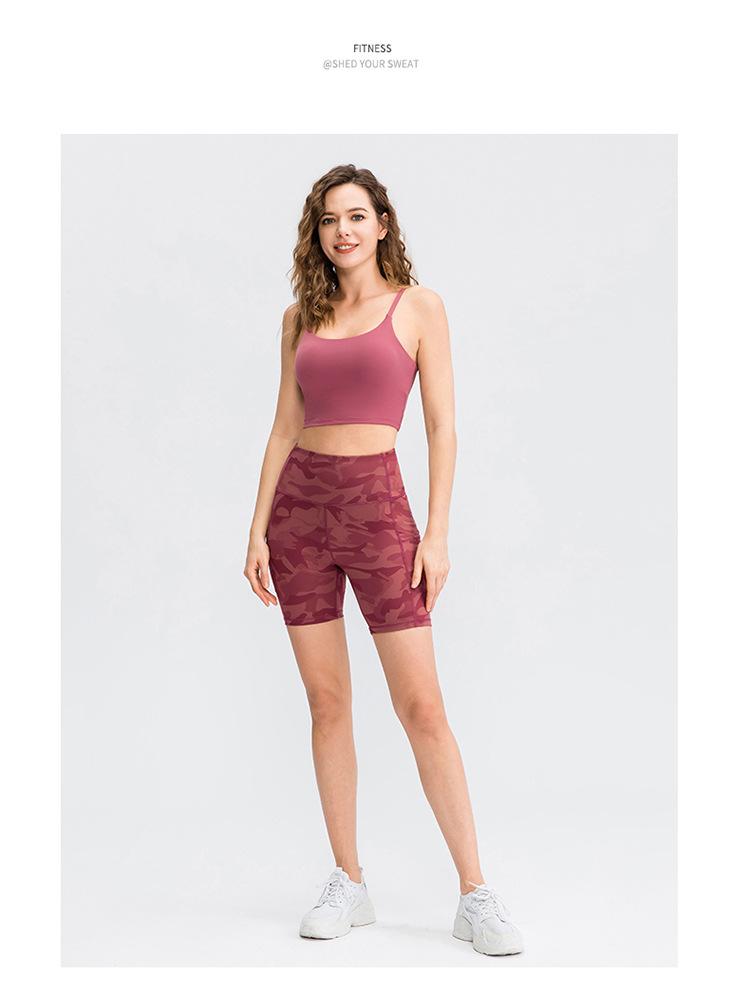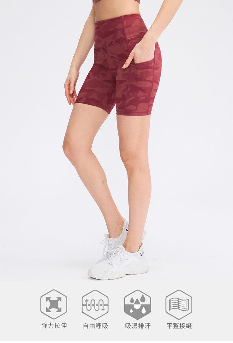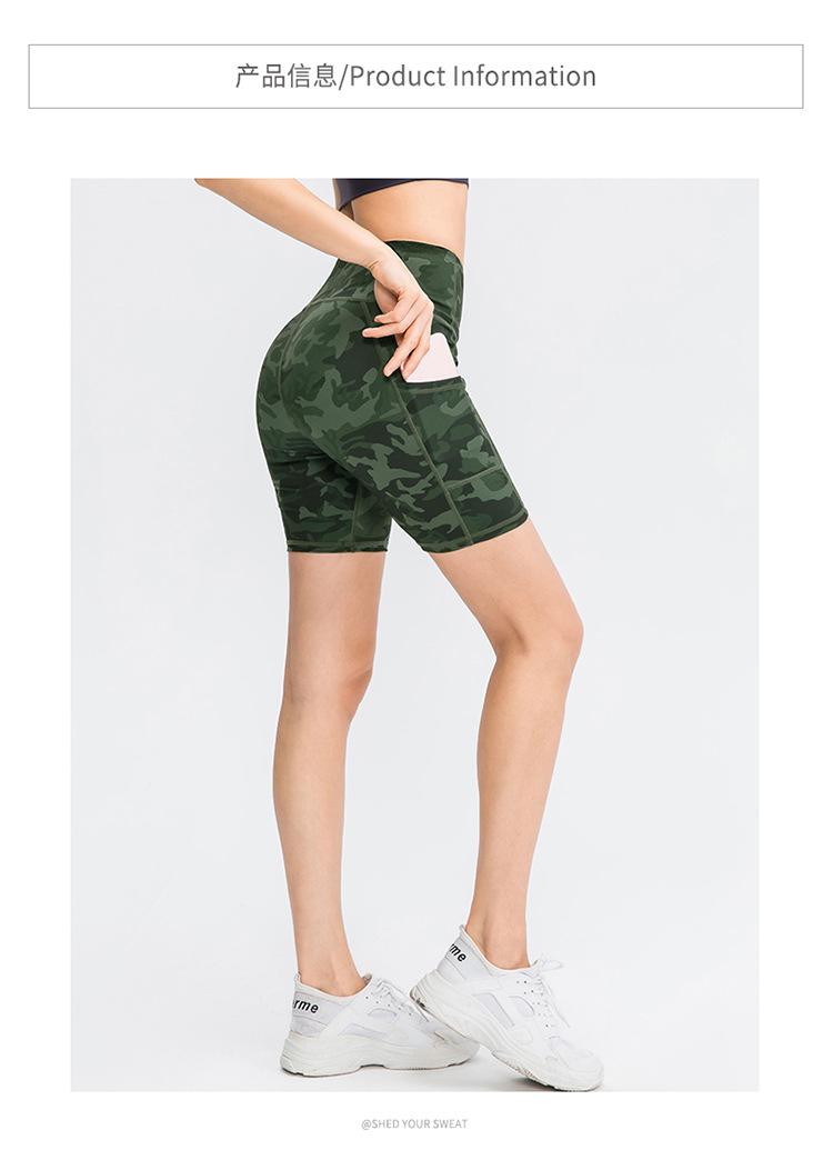 Pantalones cortos de yoga personalizados con estampado nude para mujer, ajustados, elásticos y de secado rápido, para fitness y deportes.