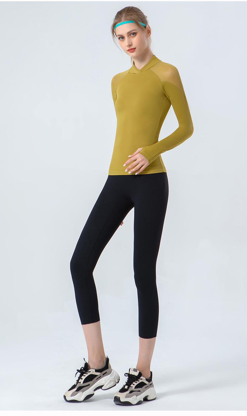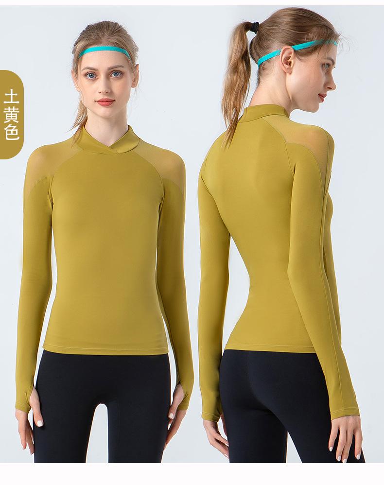 2025 Nuevo Otoño e Invierno Malla Transpirable Recorte Ropa de Yoga Manga Larga para Mujer Ajustada Adelgazante Look Ropa Deportiva para Correr Fitness