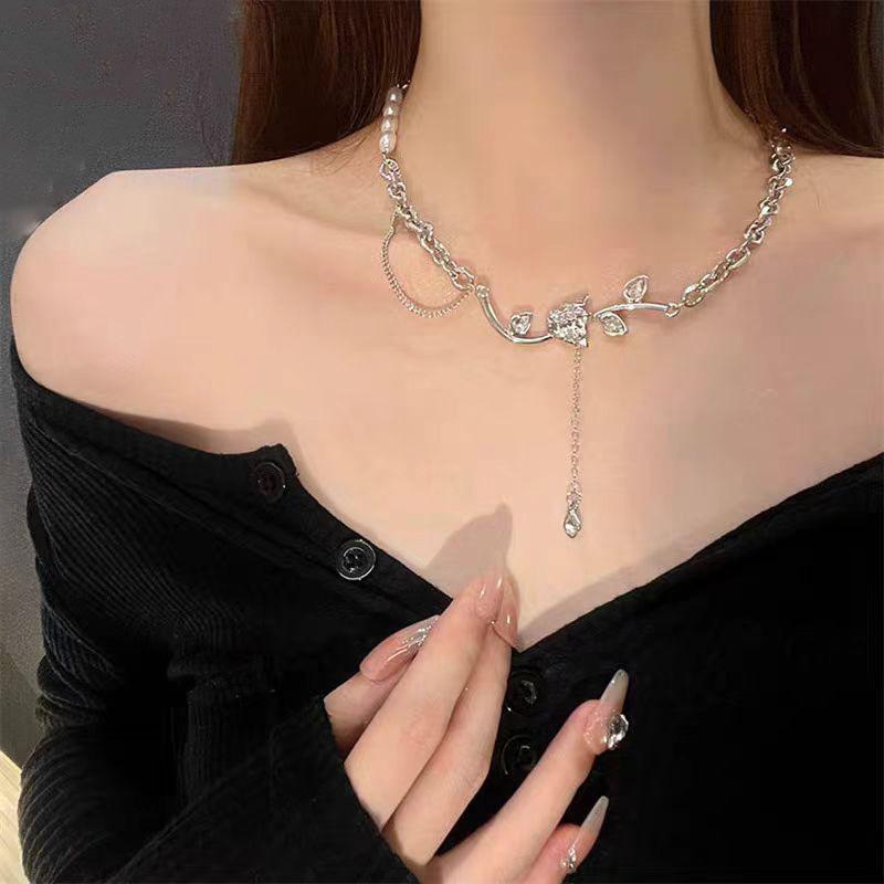 Collar de perlas de tulipán con diseño de nicho para mujer, cadena de clavícula de alta calidad, collar con borlas, accesorios de joyería