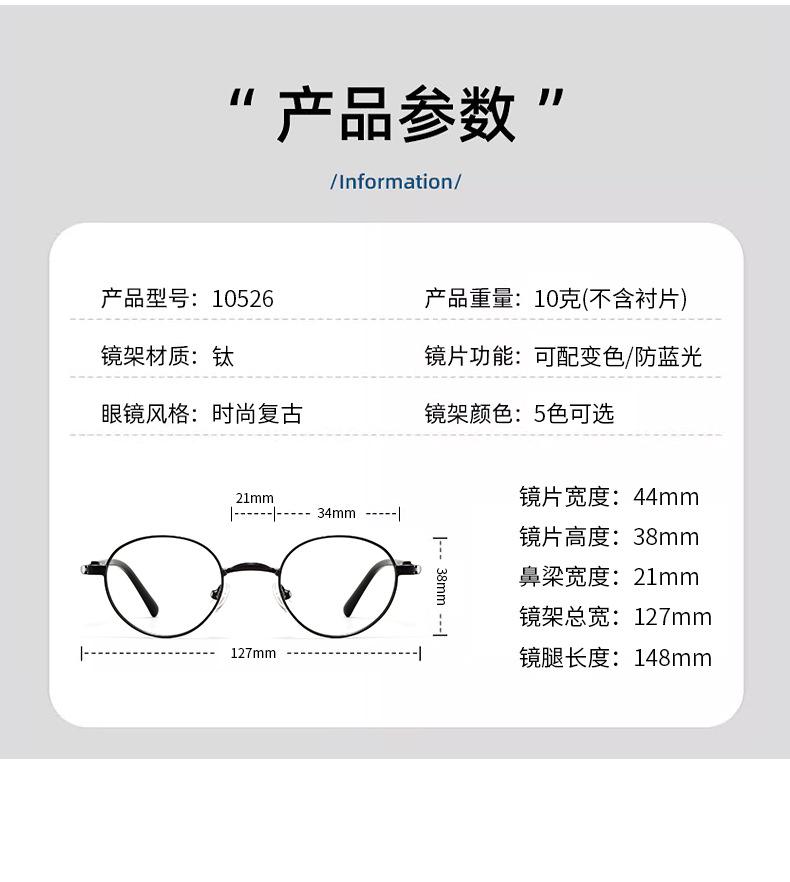 Lentes Junda Nuevo Armazón Retro de Titanio Puro Ultraligero Titanio Completo 10526 Miopía Armazón de Lentes de Ala Ancha Venta al por Mayor