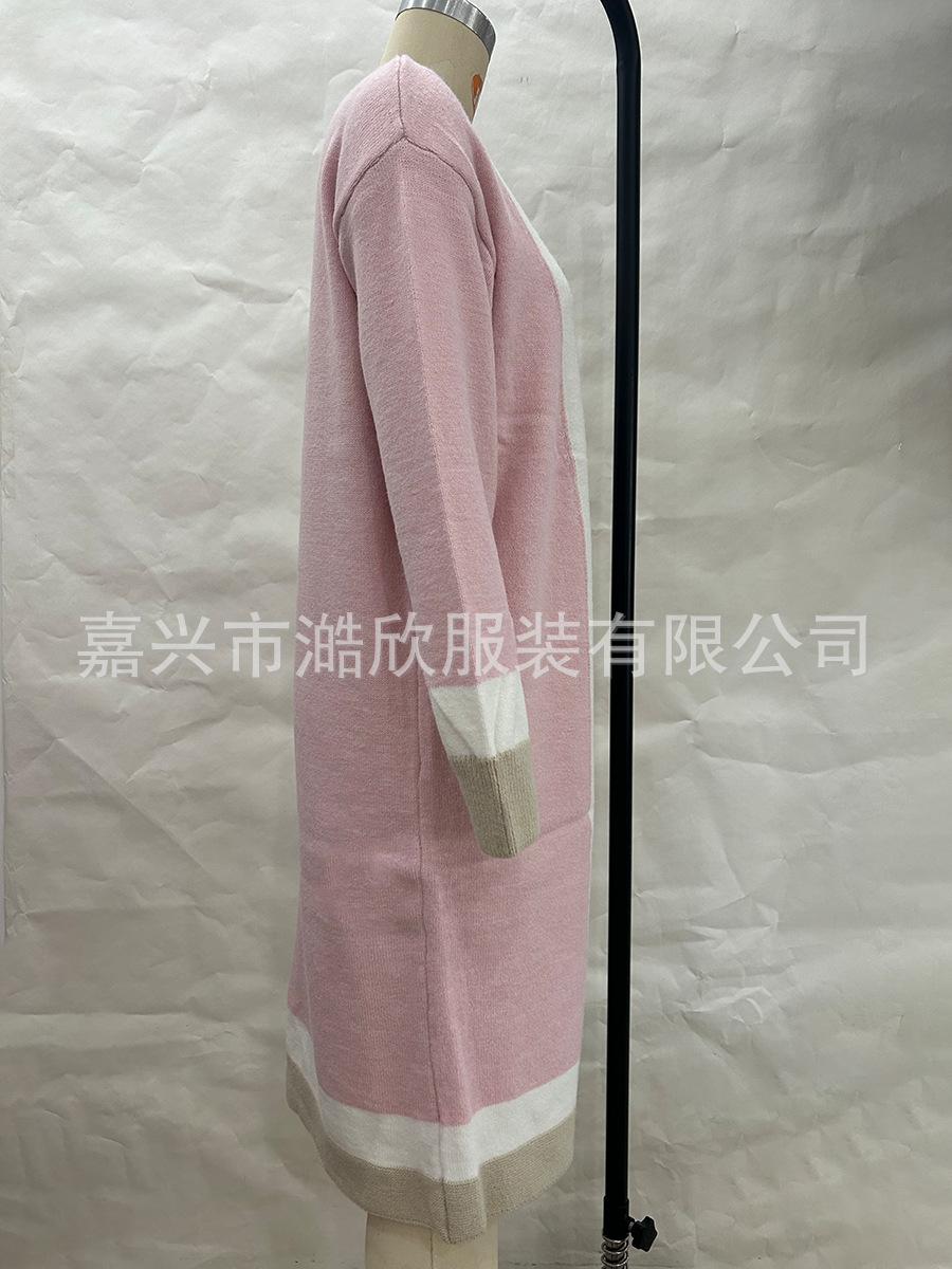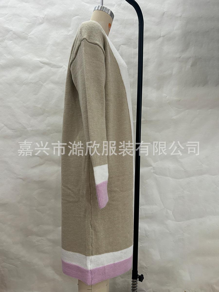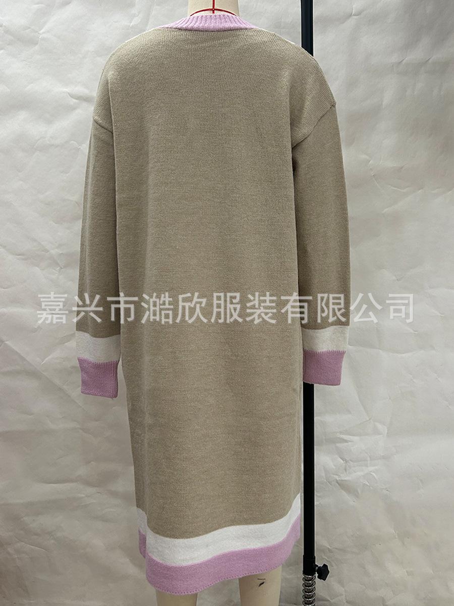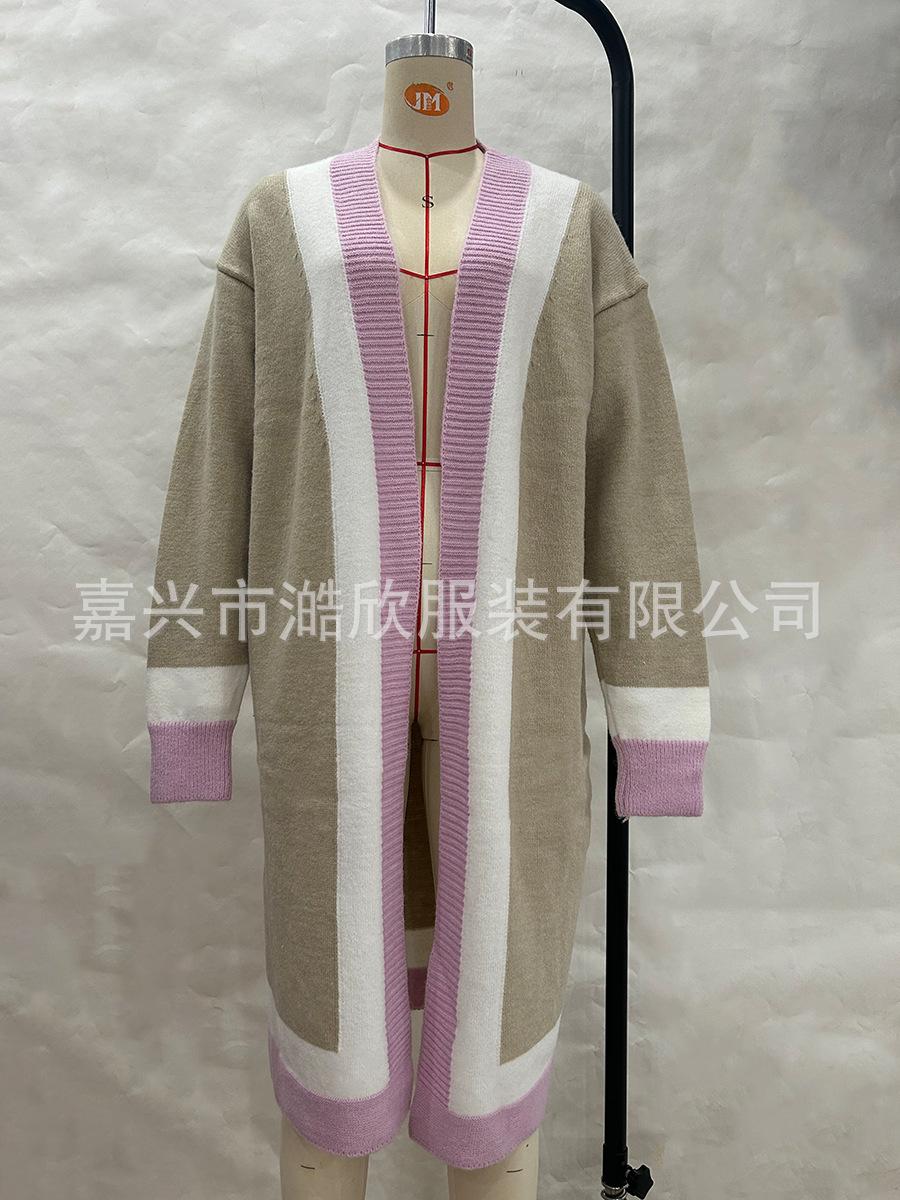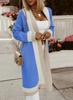 Chaqueta Larga de Punto Europea y Americana de Otoño e Invierno para Mujer con Combinación de Colores, Simple y Elegante, Cárdigan Largo Casual Holgado, Tejido de Punto para Mujer
