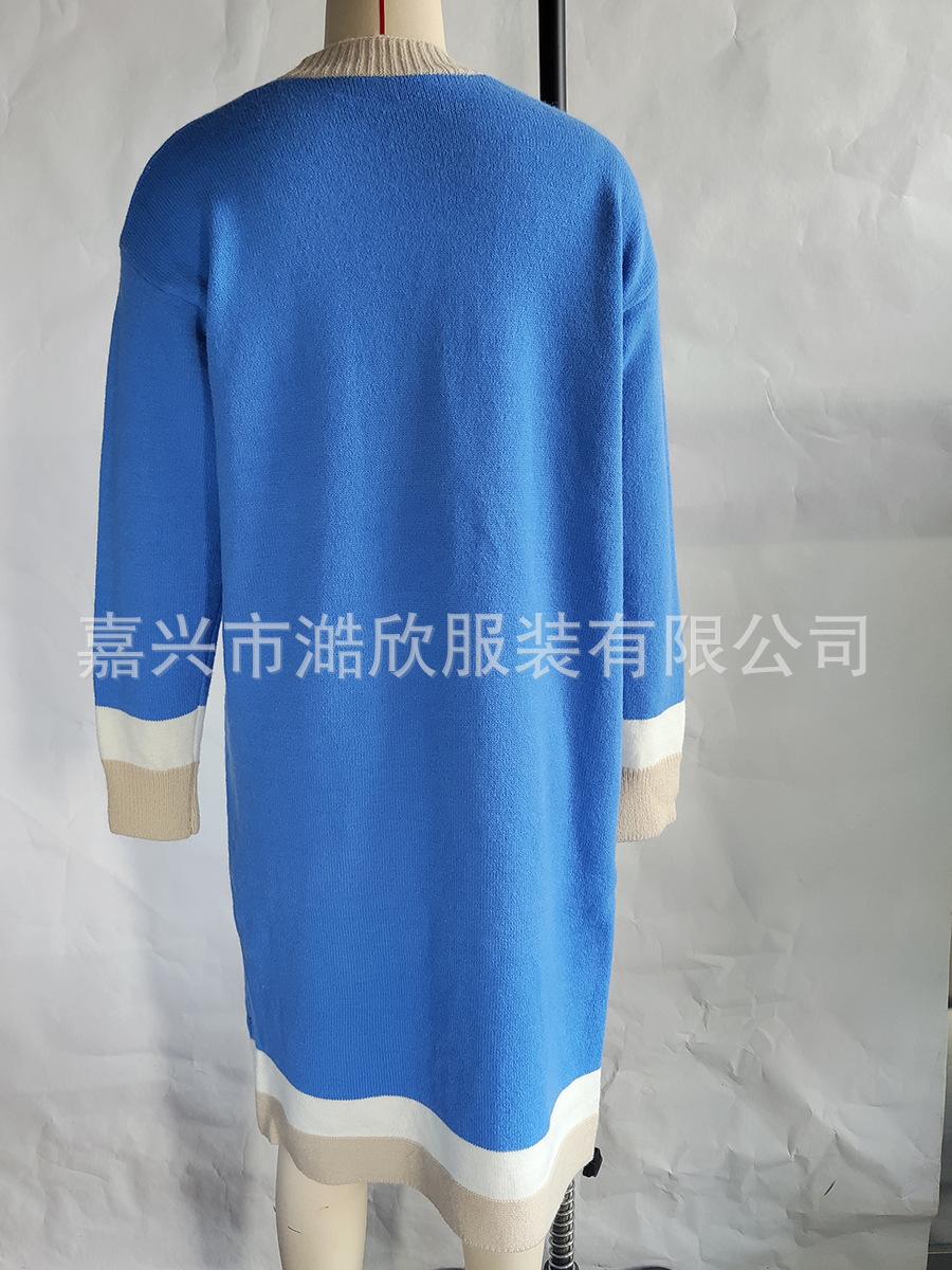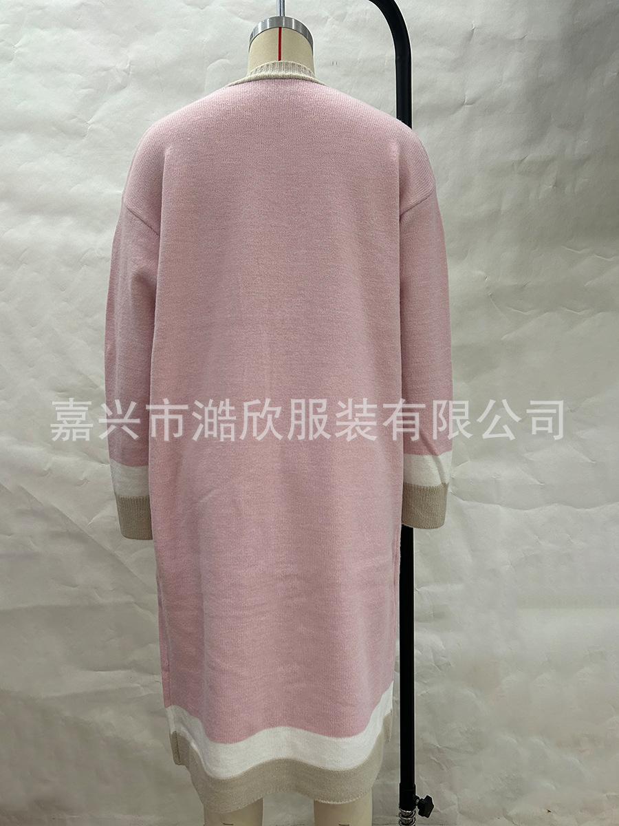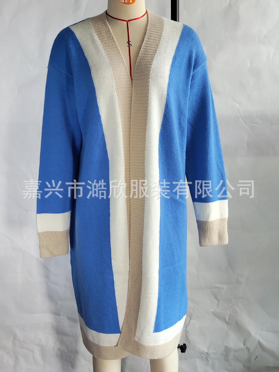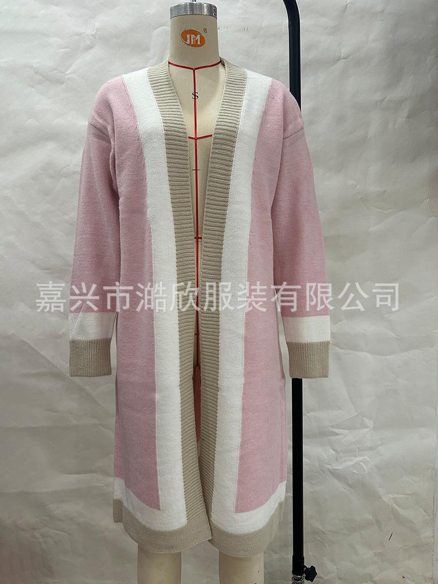 Chaqueta Larga de Punto Europea y Americana de Otoño e Invierno para Mujer con Combinación de Colores, Simple y Elegante, Cárdigan Largo Casual Holgado, Tejido de Punto para Mujer