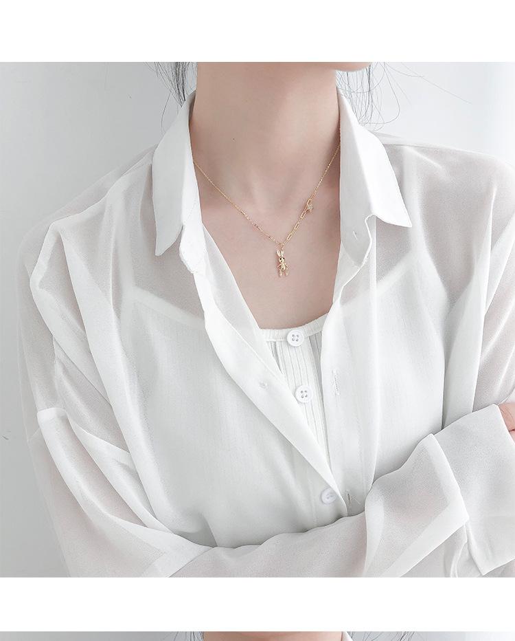 Collar de conejo de plata de ley 925 2020 para mujer, cadena de clavícula sencilla y elegante, diseño de nicho, estilo coreano.