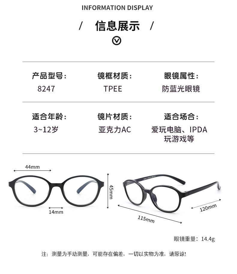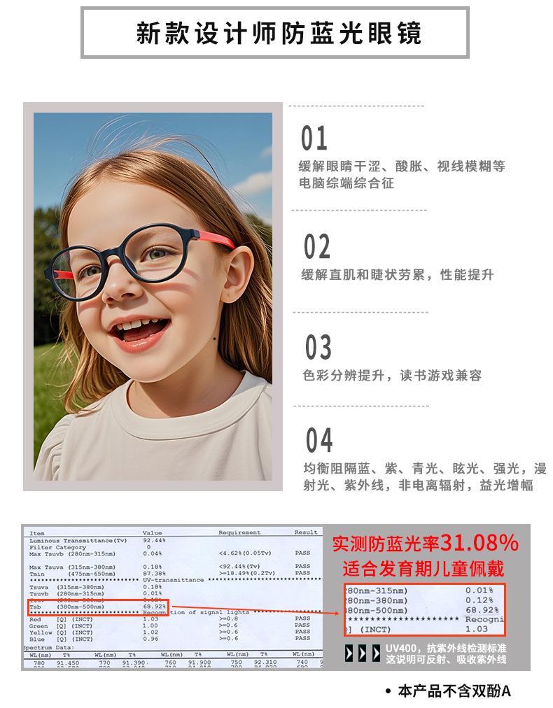 2025 Nuevos Lentes Cómodos para Niños con Luz Anti-Azul para Niños y Niñas Gafas de Silicona Montura Redonda Espejo Plano F8247