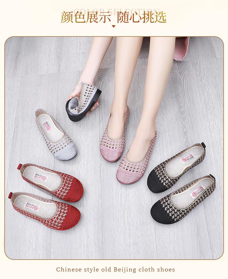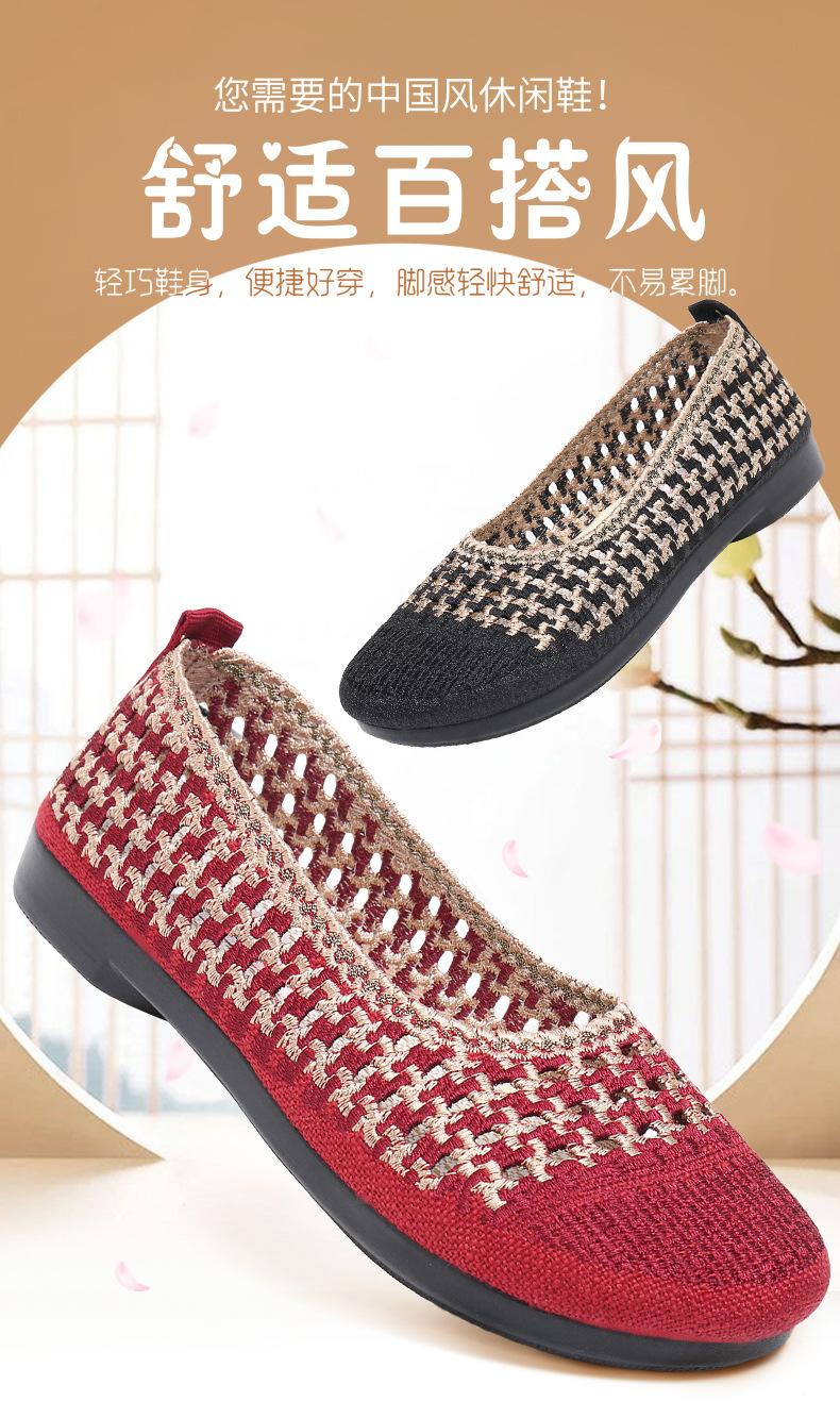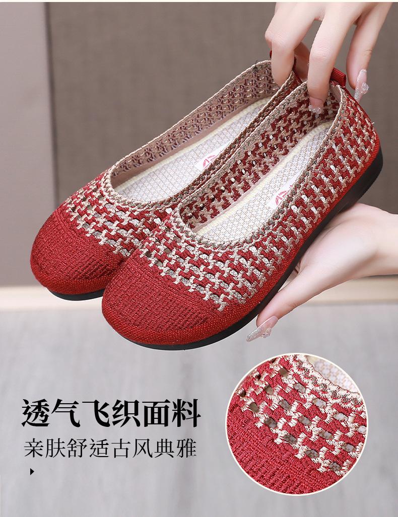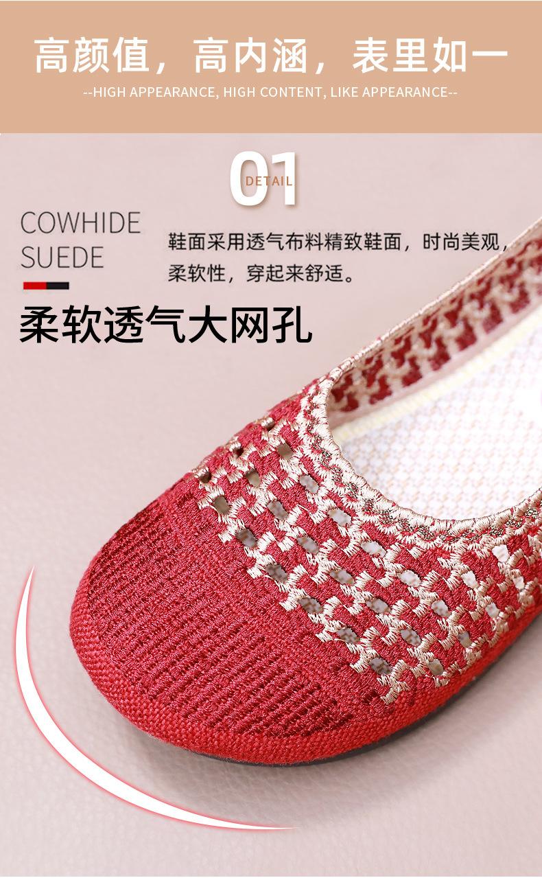 Zapatos de verano para mujer, nuevos zapatos casuales de malla hueca para mujer, zapatos transpirables para madre, zapatos de suela suave sin cordones, zapatos antiguos de tela de Beijing