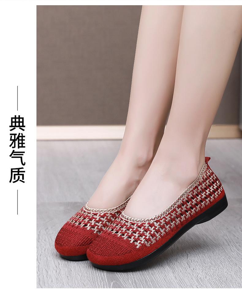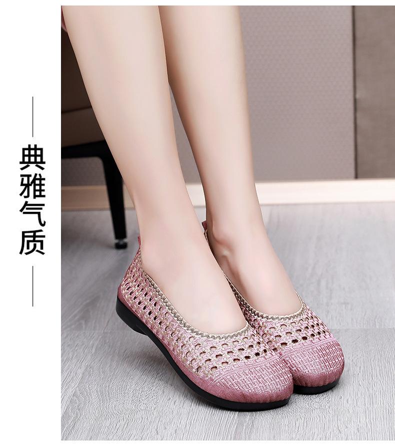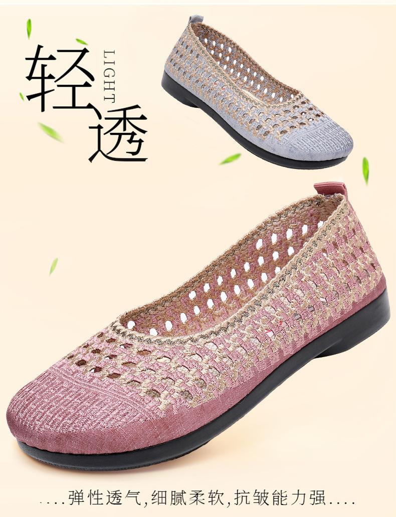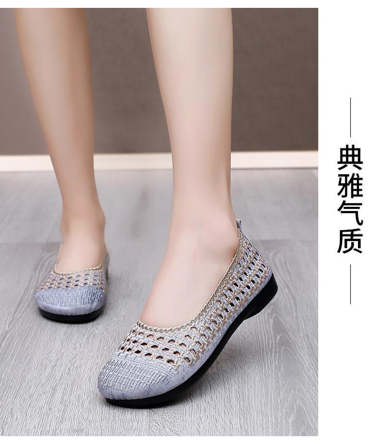 Zapatos de verano para mujer, nuevos zapatos casuales de malla hueca para mujer, zapatos transpirables para madre, zapatos de suela suave sin cordones, zapatos antiguos de tela de Beijing