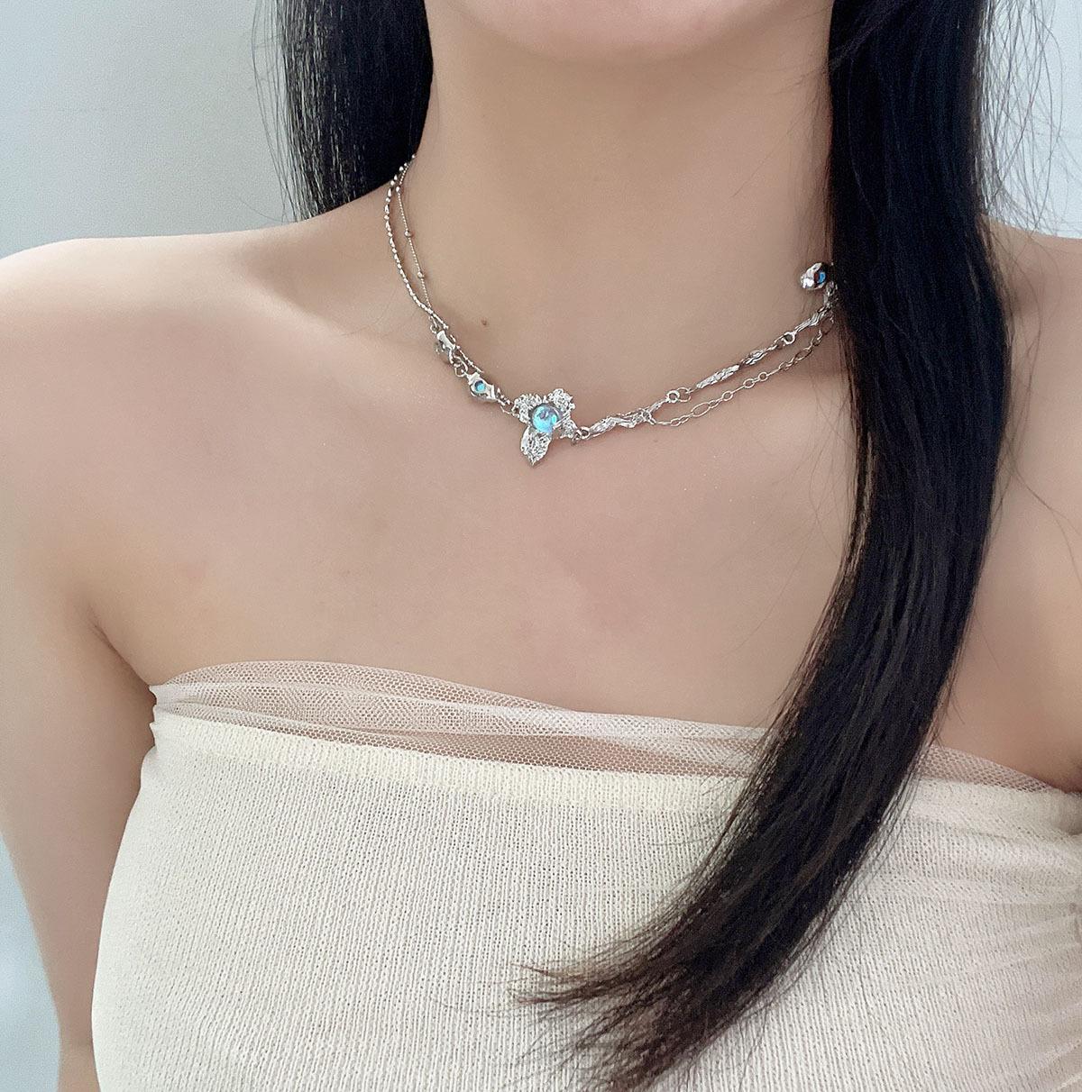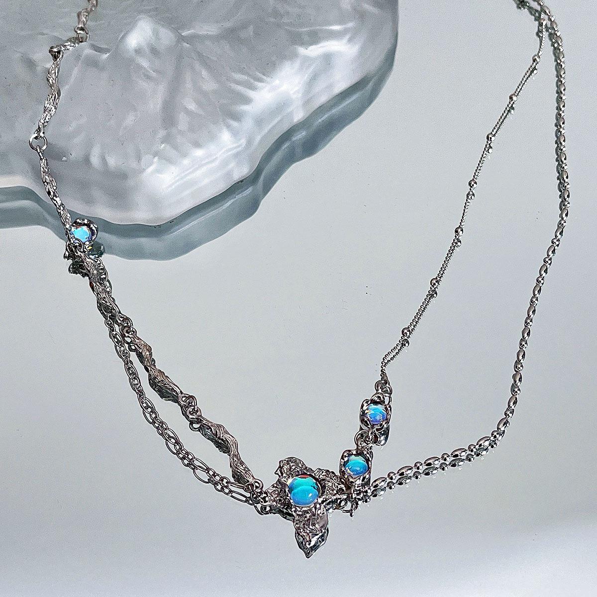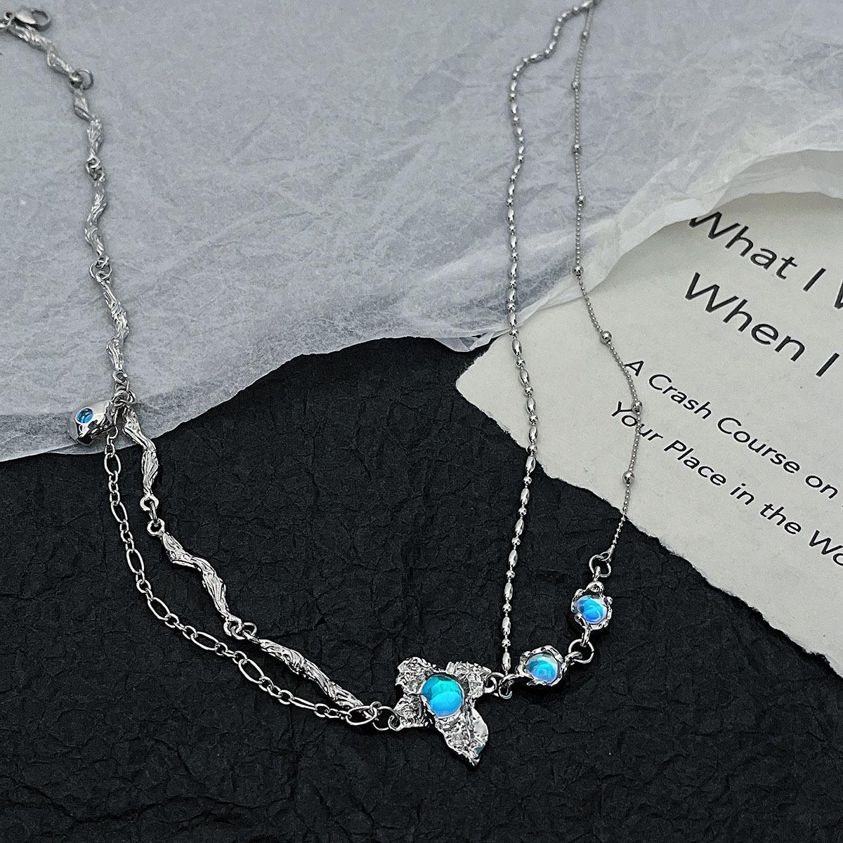 Collar de piedra lunar retro de estilo europeo y americano para mujer, de alta gama, ligero, de lujo, diseño de nicho, elegante cadena de clavícula de celebridades de Internet, exquisito