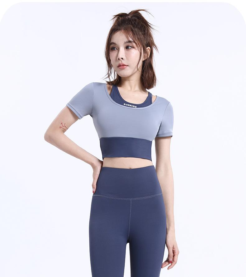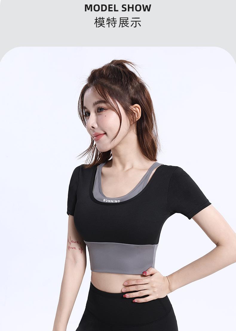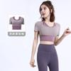 Ropa de Yoga para Mujer 2025 Nuevo Estilo con Almohadilla en el Pecho Running Look Adelgazante Secado Rápido Tops Deportivos de Yoga Set Ropa de Fitness de Manga Corta