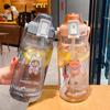 Taza Espacial Transfronteriza con Asa Fitness Portátil con Pajita Taza de Agua con Escala de Gran Capacidad Degradada Botella Deportiva para Exteriores