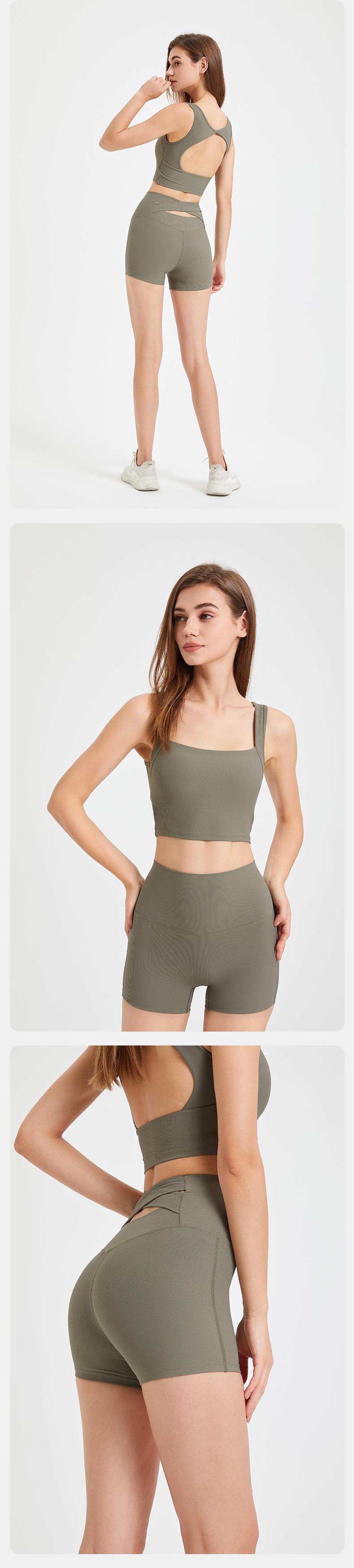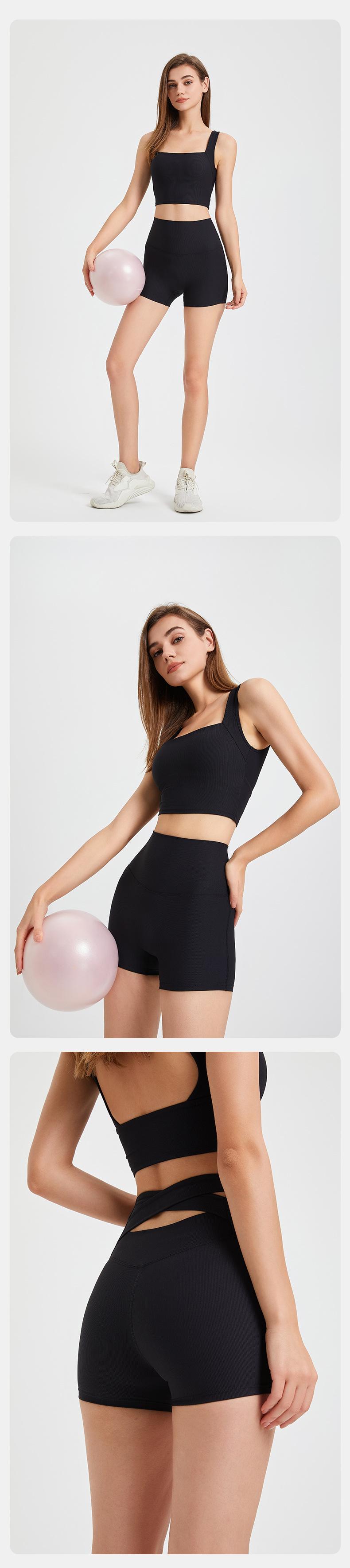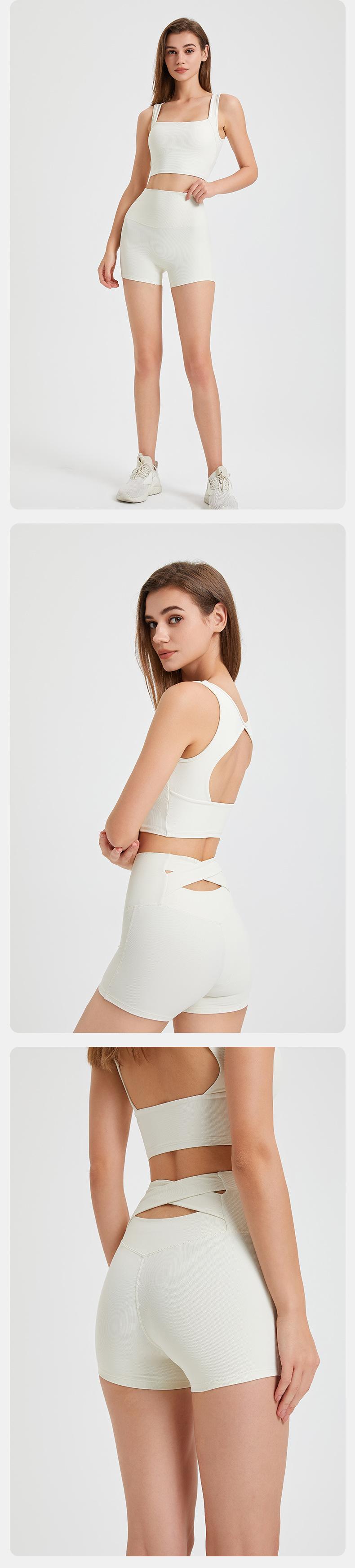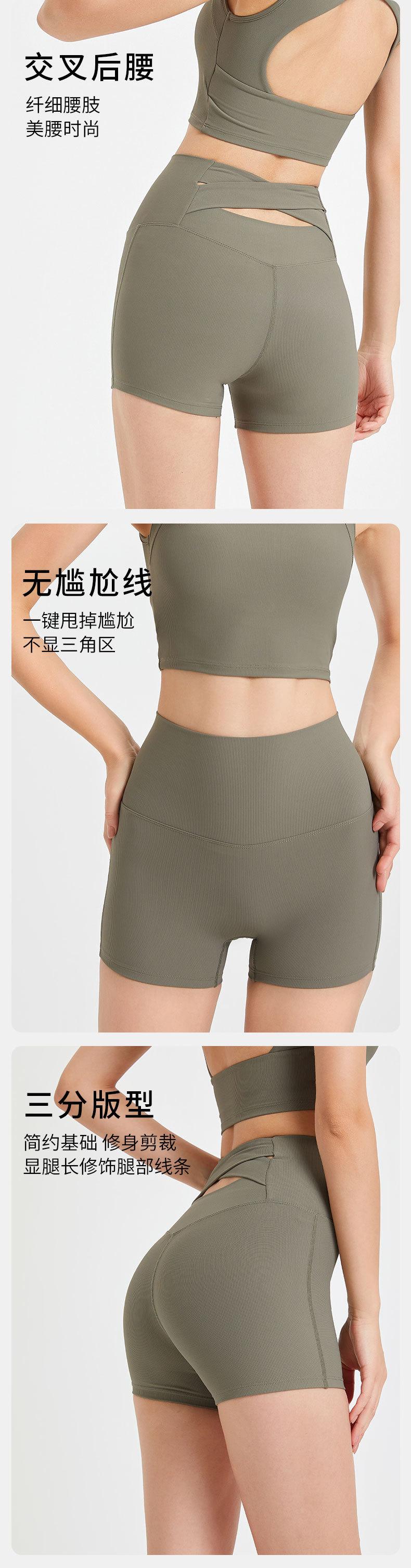 Pantalones cortos de yoga con cintura alta, espalda cruzada, vientre, cadera y melocotón, para mujer, sin costuras, deportivos de tres piezas, pantalones de fitness de secado rápido