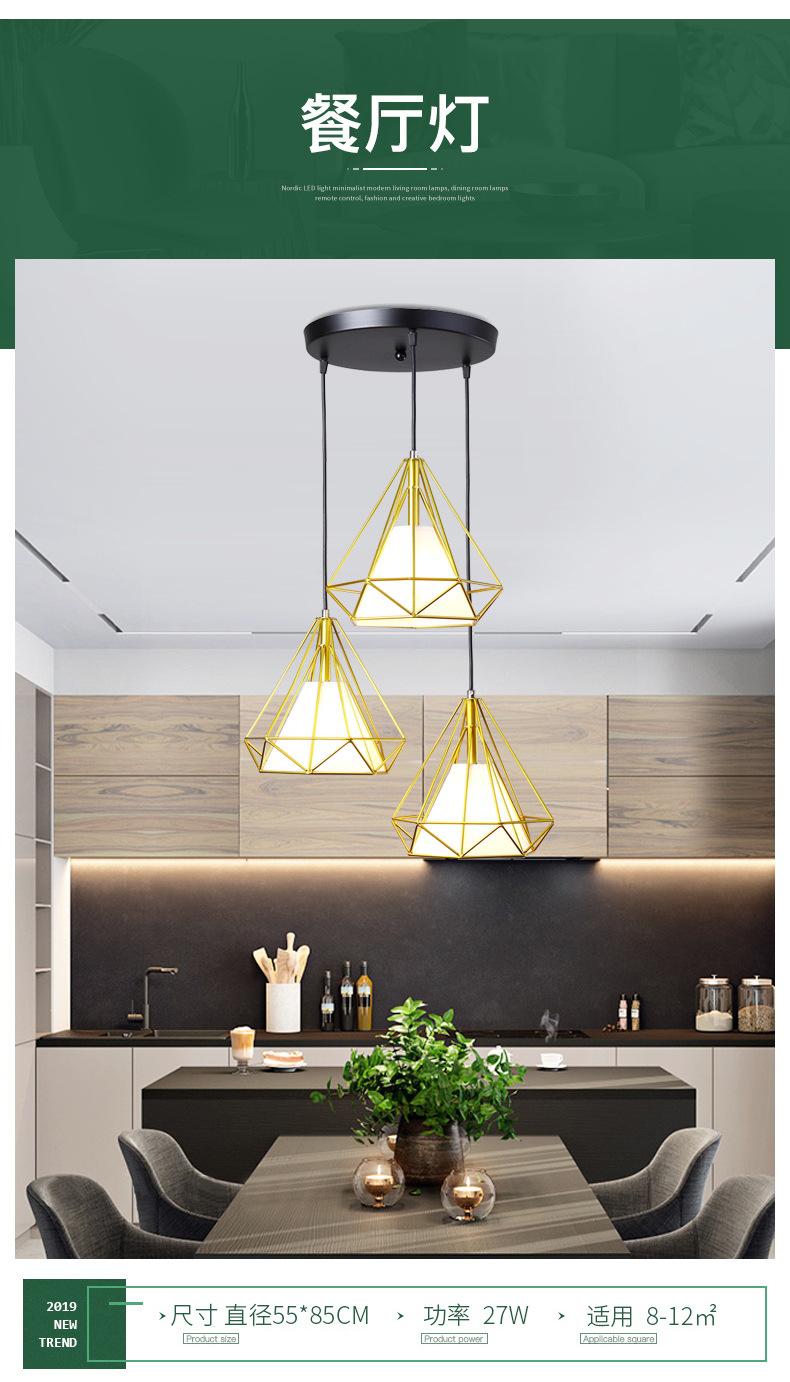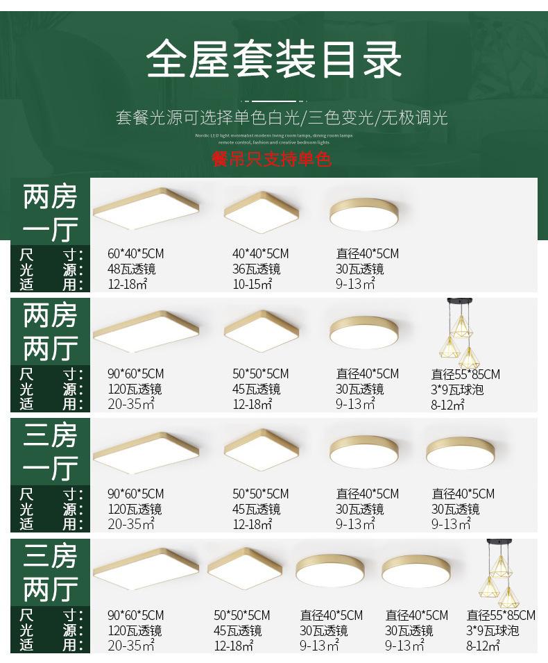 Lámpara de techo nórdica dorada de tres habitaciones y dos pasillos, paquete combinado, lámpara de techo sencilla para sala de estar y dormitorio