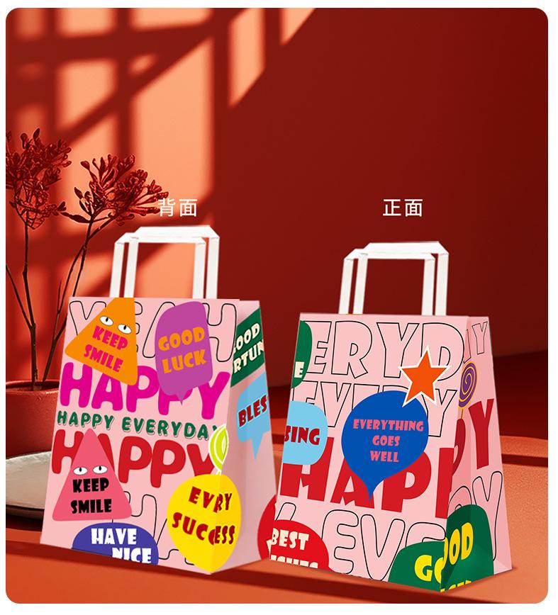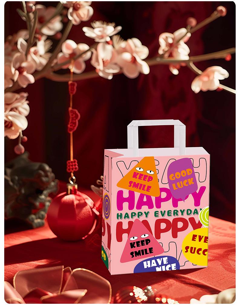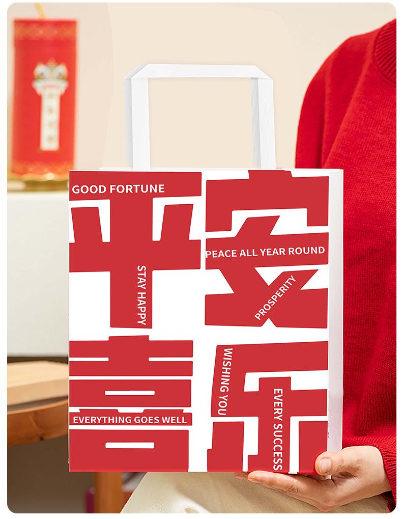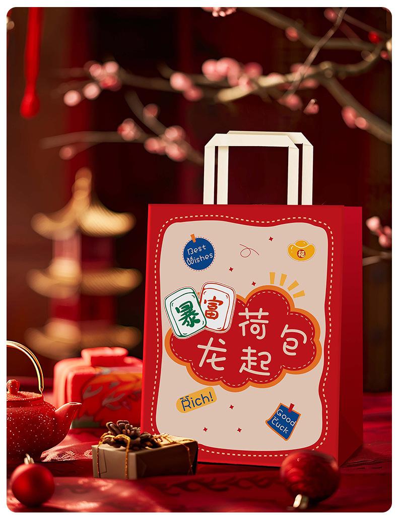 Bolsa de Regalo Festiva Marea Nacional Bolsa de Mano para Regalo de Año Nuevo Bolsa para Empaque para Llevar Té con Leche Bolsa de Papel Kraft para Ropa