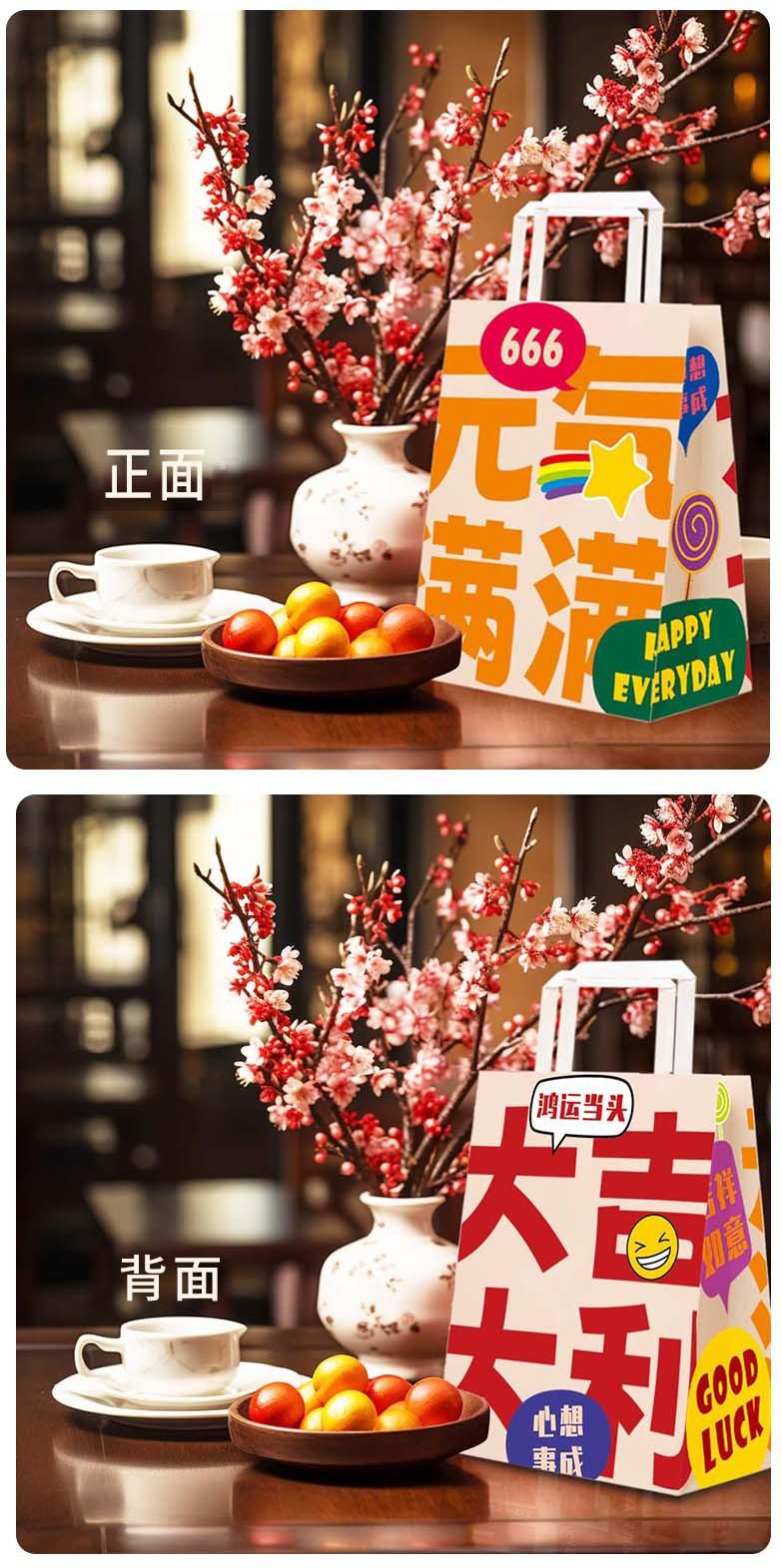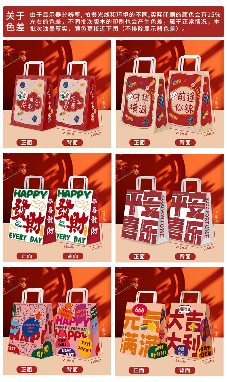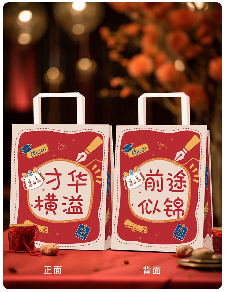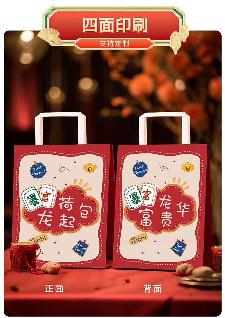 Bolsa de Regalo Festiva Marea Nacional Bolsa de Mano para Regalo de Año Nuevo Bolsa para Empaque para Llevar Té con Leche Bolsa de Papel Kraft para Ropa