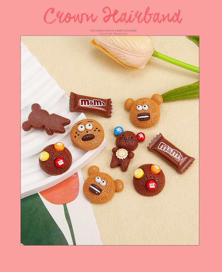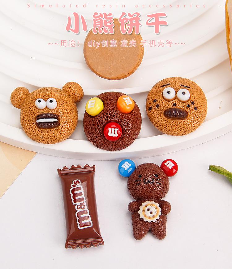 Galleta de oso de dibujos animados, caramelo M bean, comida de simulación y juego, accesorios de resina, funda para teléfono móvil, accesorios para el cabello, zapatos con agujeros, materiales hechos a mano