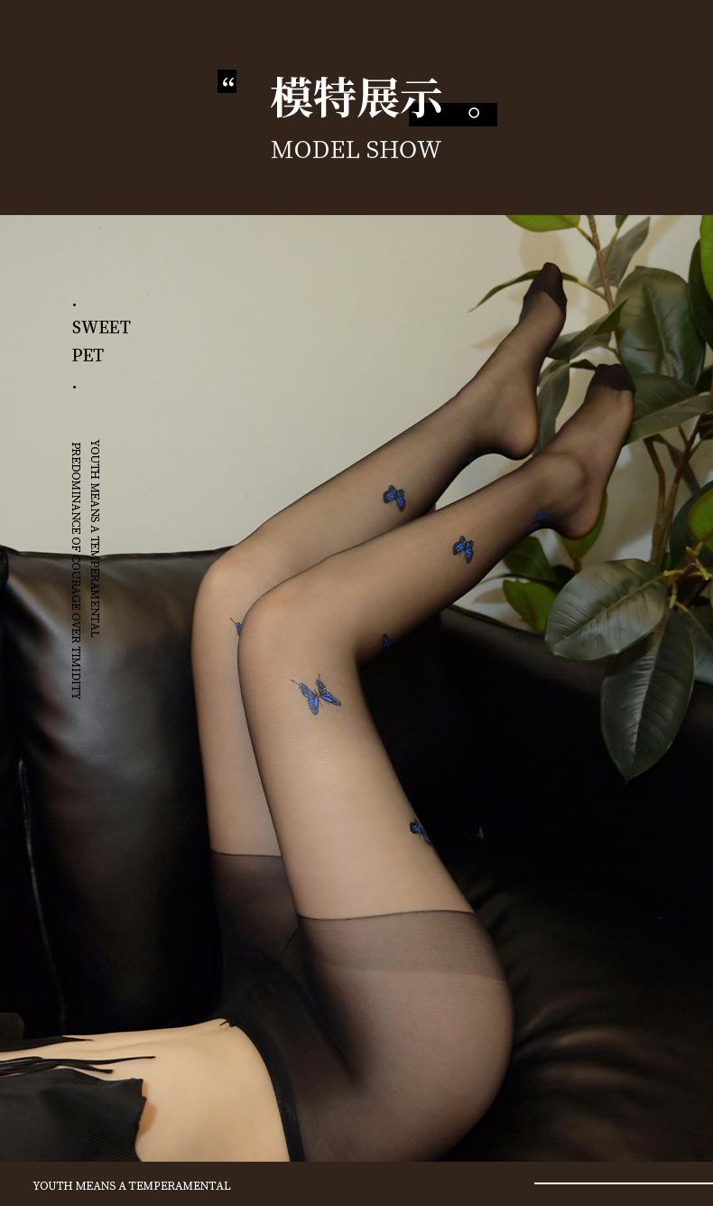 Sexy Celebridad Cibernética Lazo Azul Medias de Seda ins Deseo Puro de Mujer Seda Negra Trendy Pantimedias Ultrafinas Calcetines de Seda Antigancho