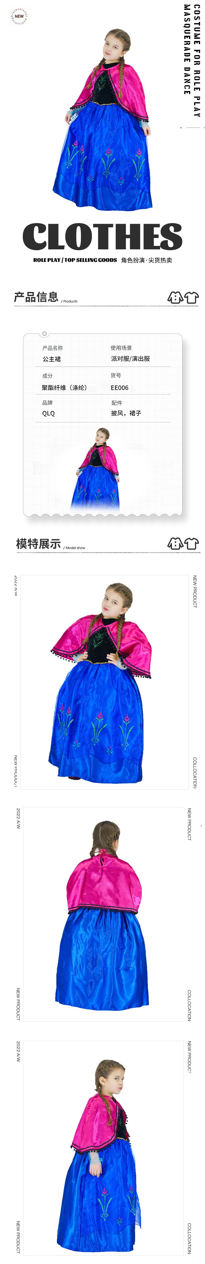 Vestido de princesa para niña, para Halloween, para fiesta infantil, cosplay, vestido azul con capa