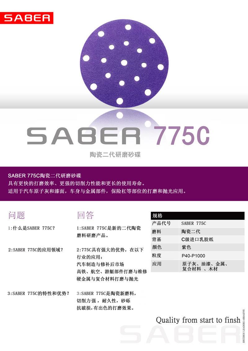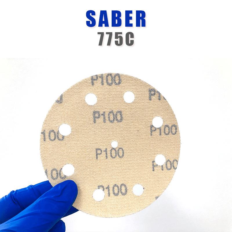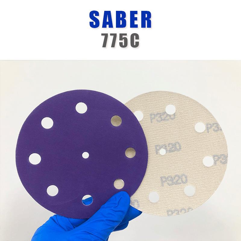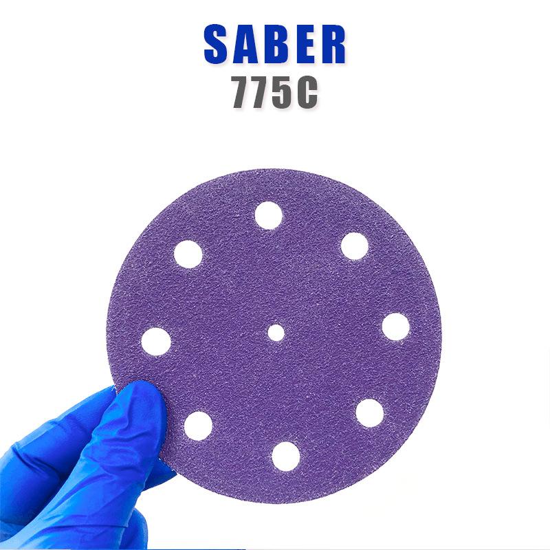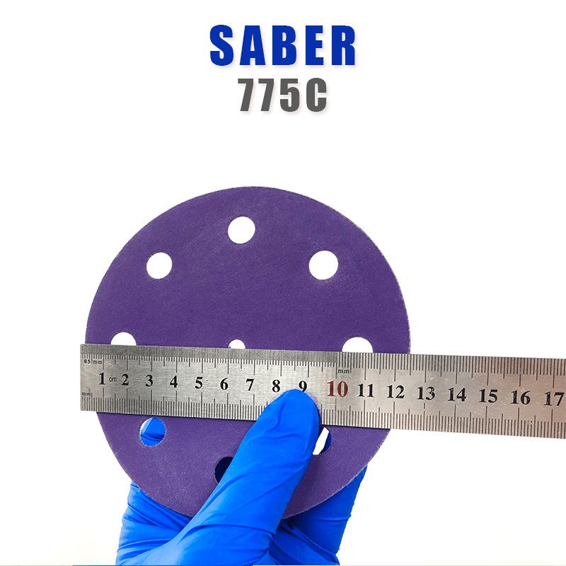 Papel de lija seco morado de óxido de aluminio cerámico 775C morado abrasivo cerámico papel de lija seco de 5 pulgadas y 9 agujeros SABER