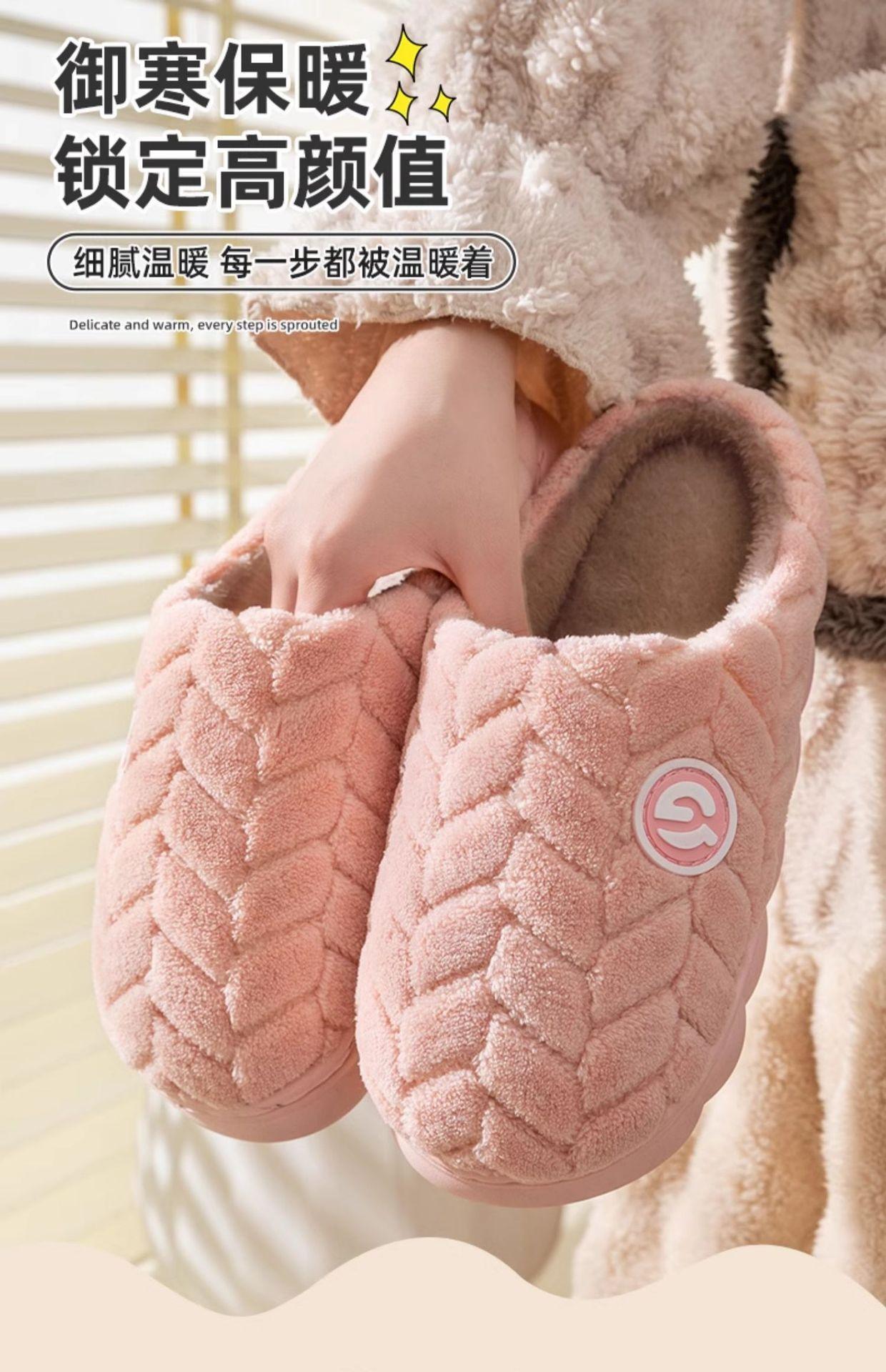 Pantuflas de Algodón para Mujer en Otoño e Invierno Baotou Cálidas de Felpa Espesor Suela Suave Pantuflas Antideslizantes para Parejas Pantuflas de Casa para Hombre