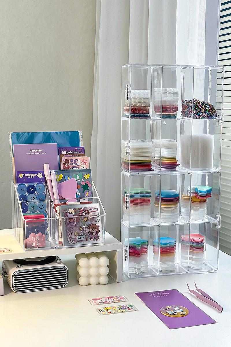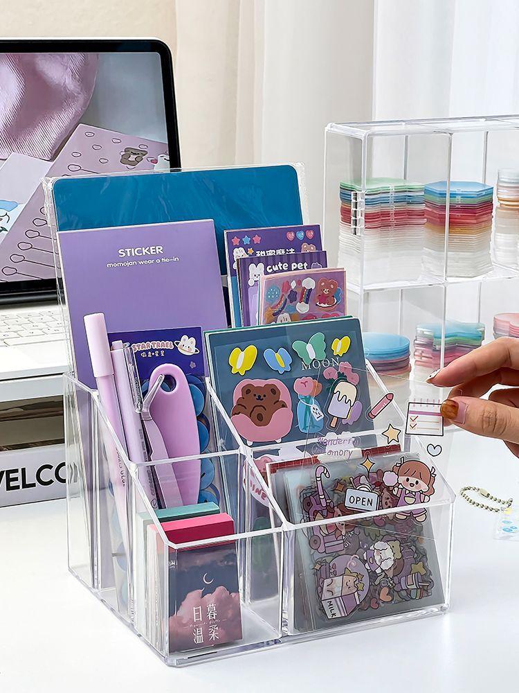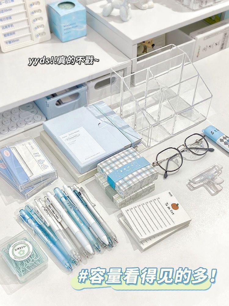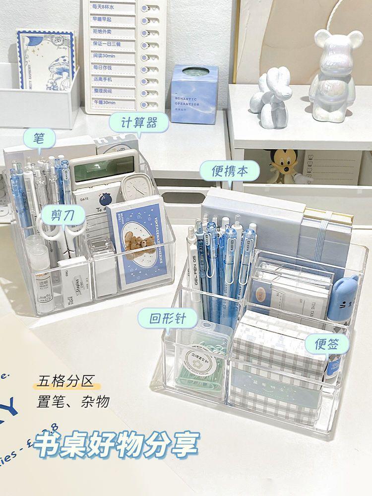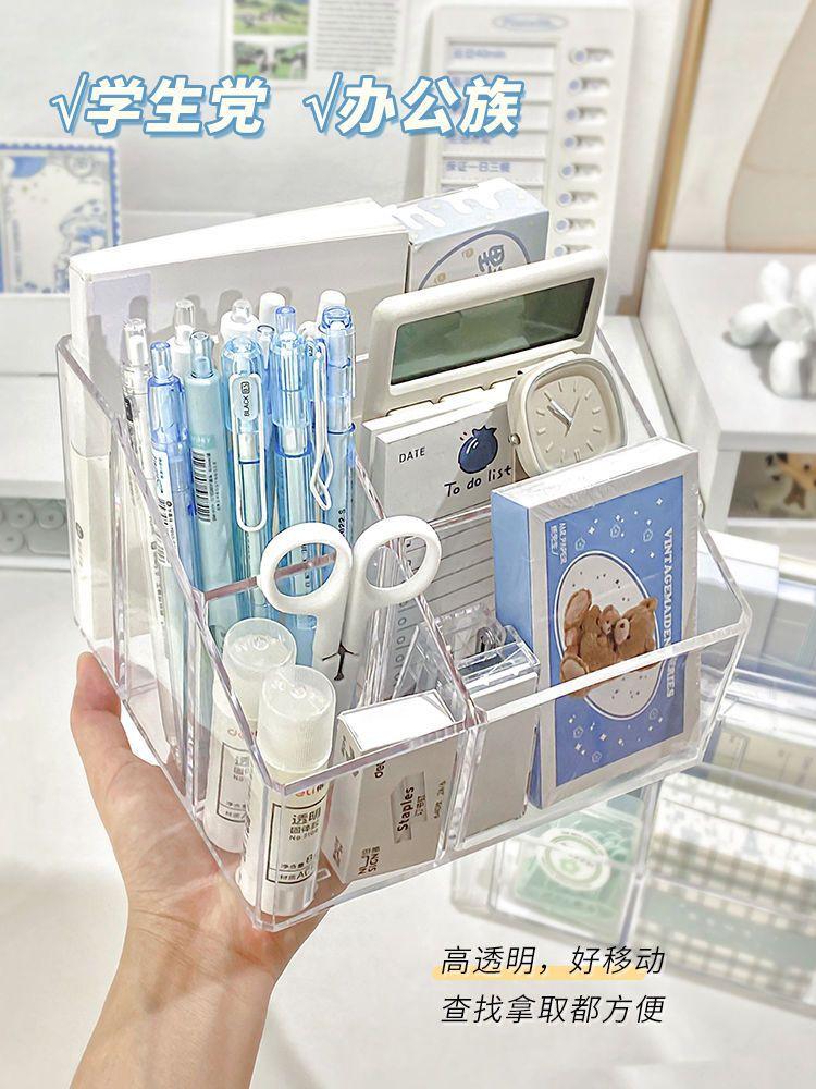 Portalápices de escritorio de acrílico transparente, gran capacidad, caja de almacenamiento para notas de estudiantes, estante de almacenamiento para escritorio de oficina, caja organizadora
