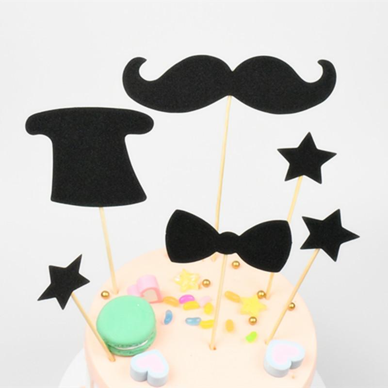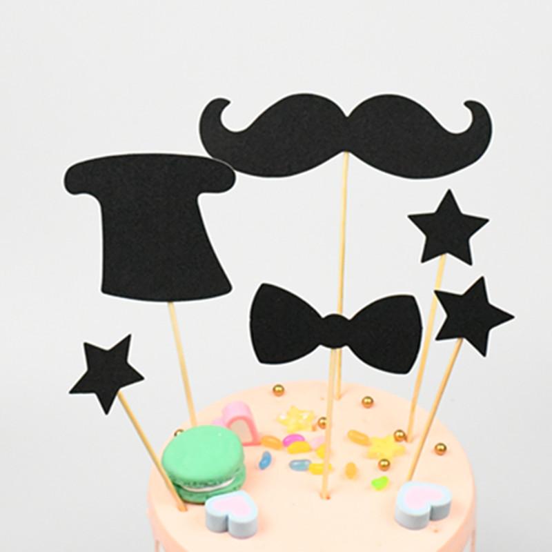 Adornos decorativos para tartas, diseño de bandera de caballero negro, juego de seis piezas, tarjeta para tarta, tarjeta, tarjeta, arreglo para mesa de postres, cumpleaños