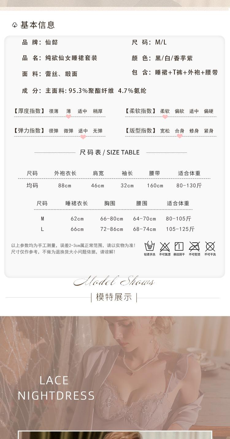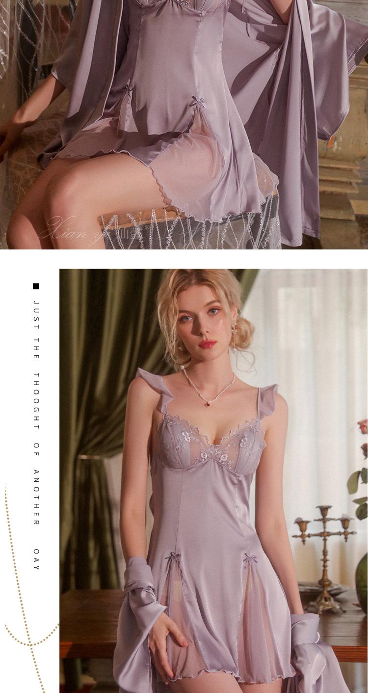 Purple (nightgown + t pants), White (nightgown + t pants), Black (nightgown + t pants), Purple (robe + belt), ...