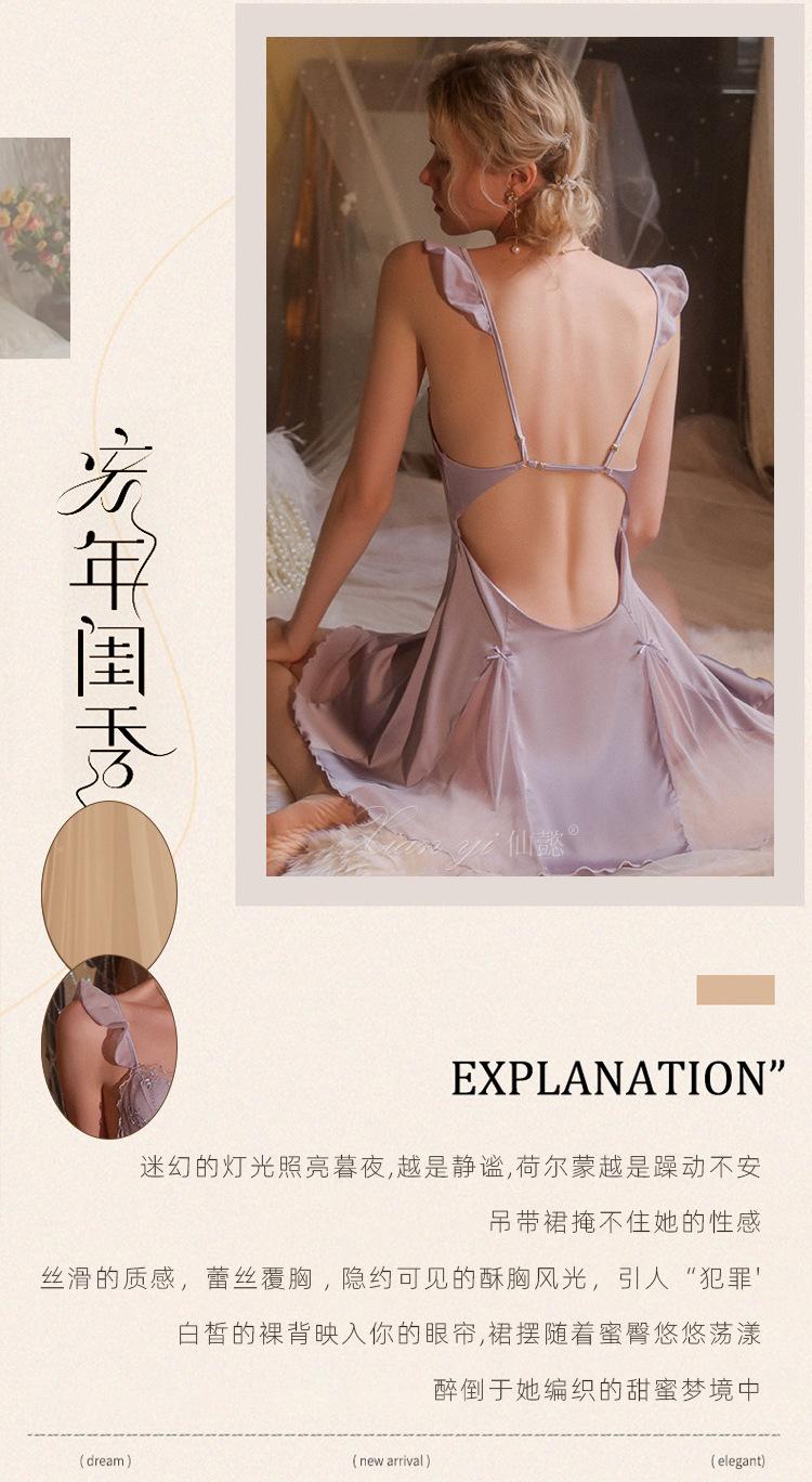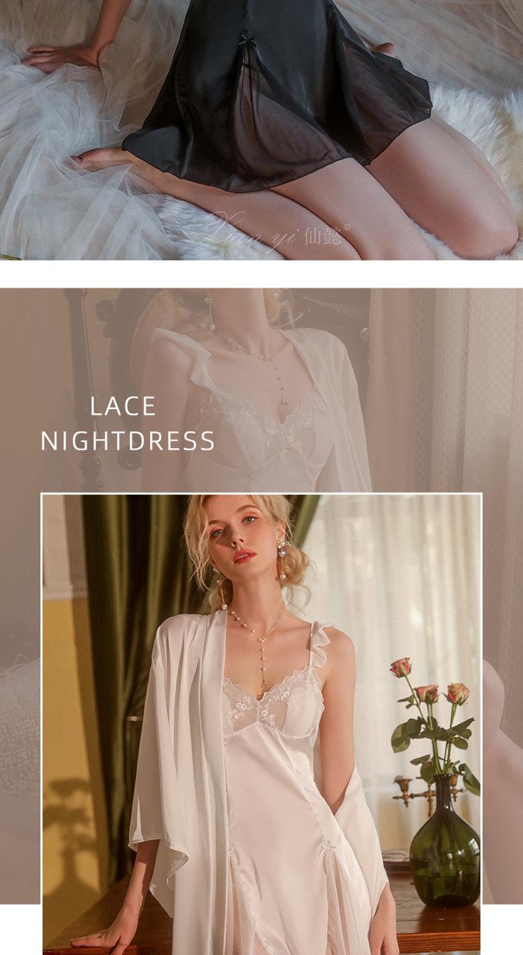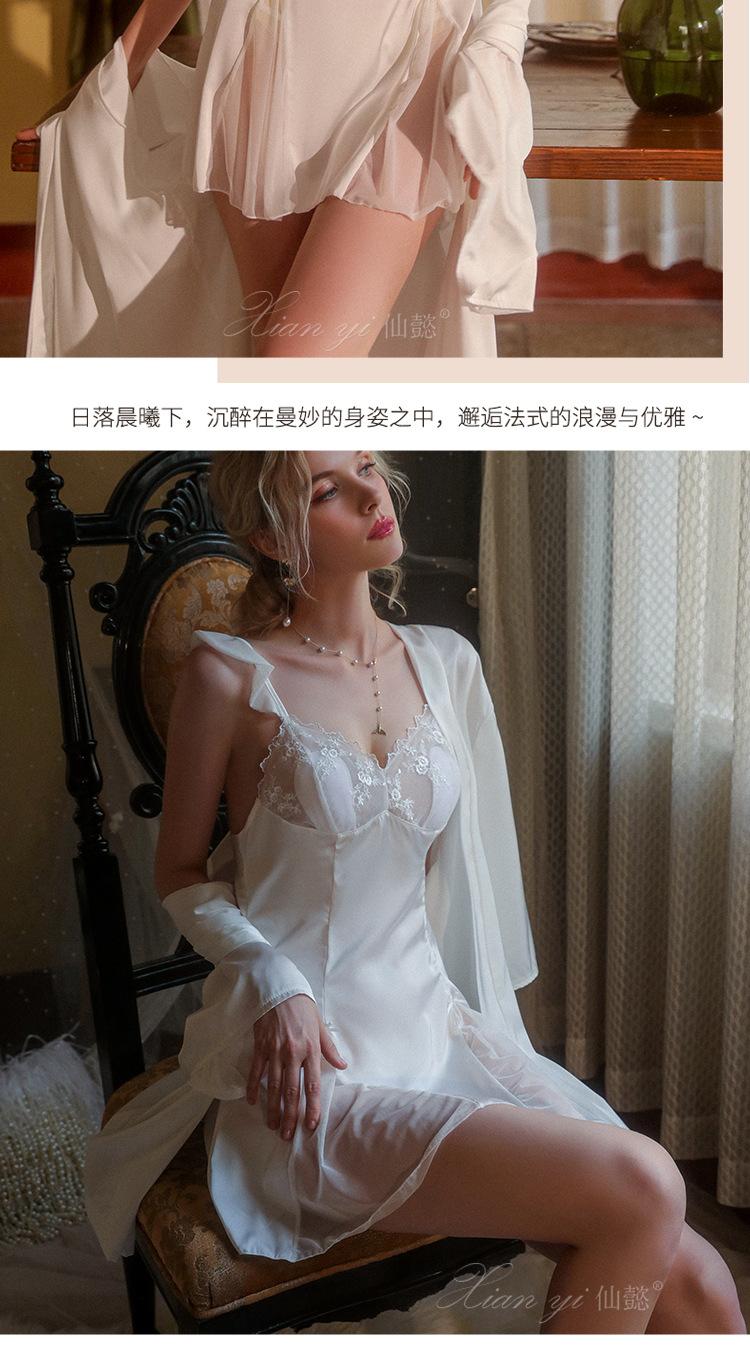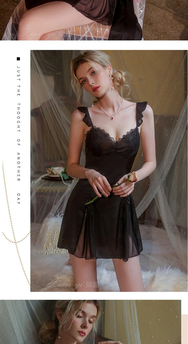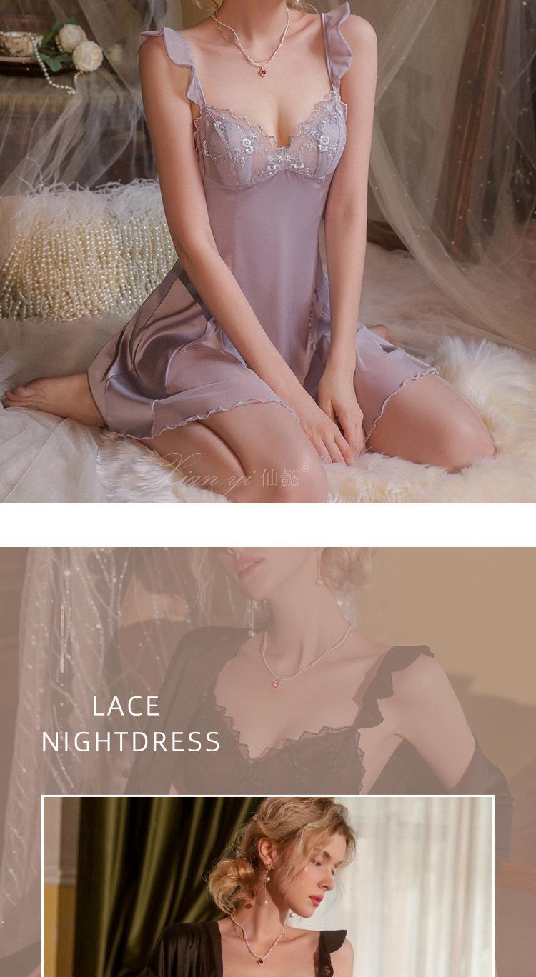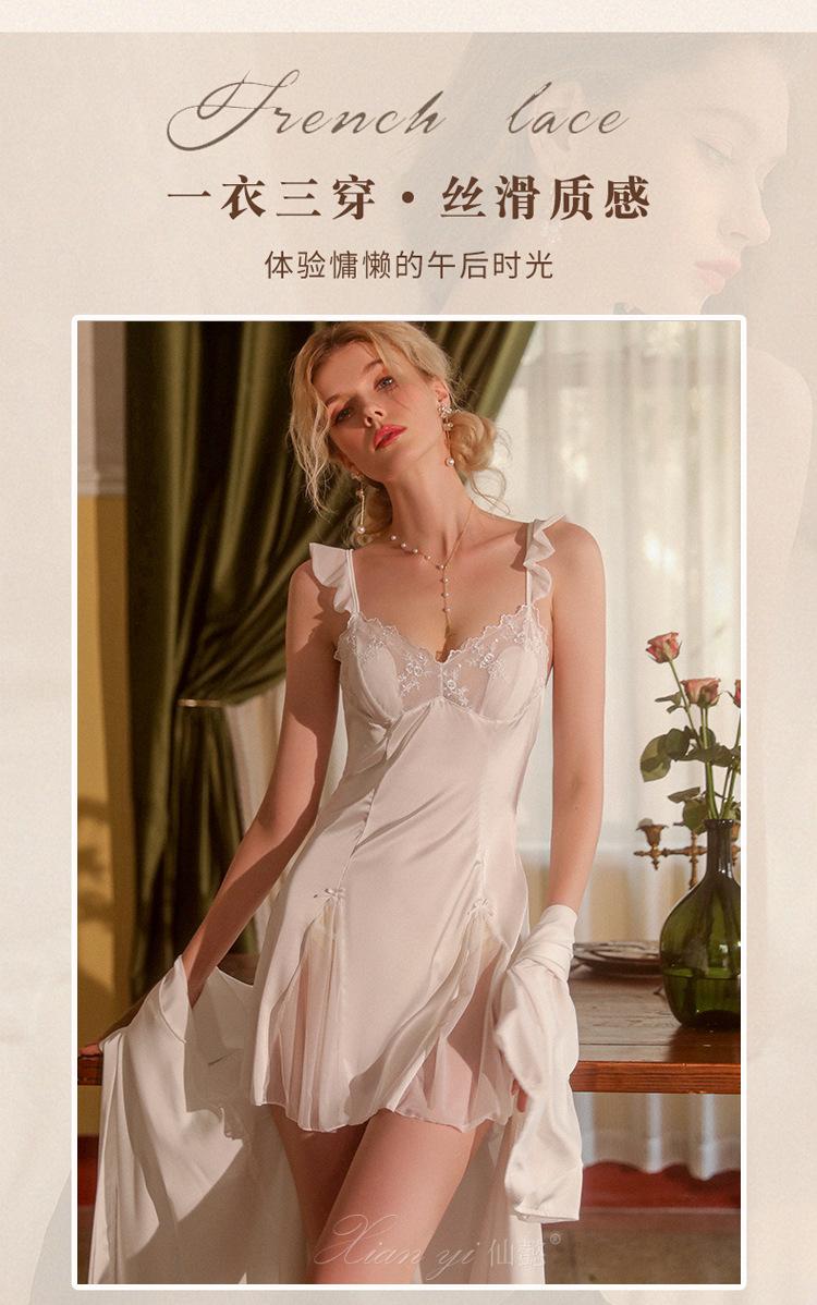 Camisón de encaje Xian Yi con tirantes para mujer, primavera y otoño, sexy, con almohadilla para el pecho, conjunto de ropa de casa para mujer 484