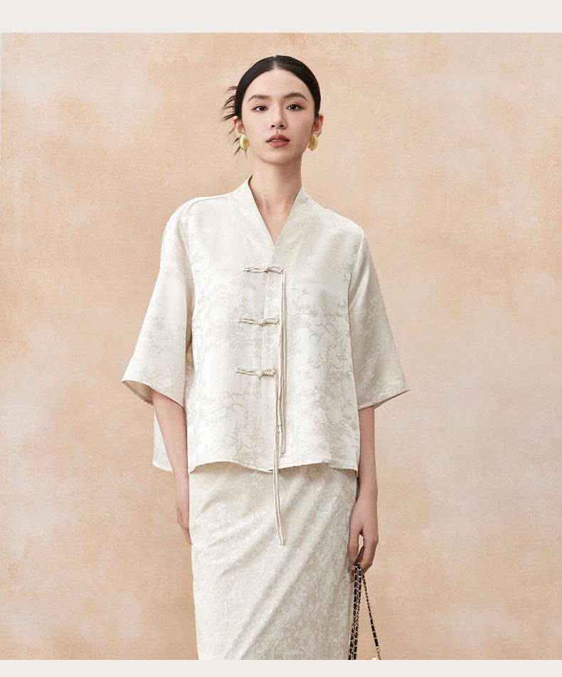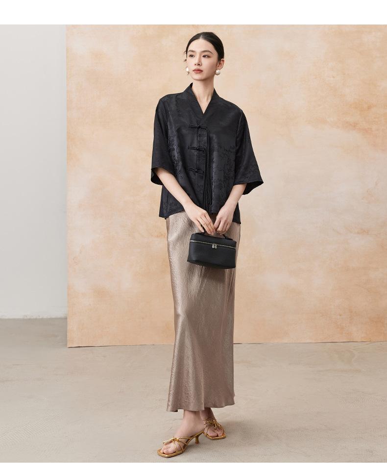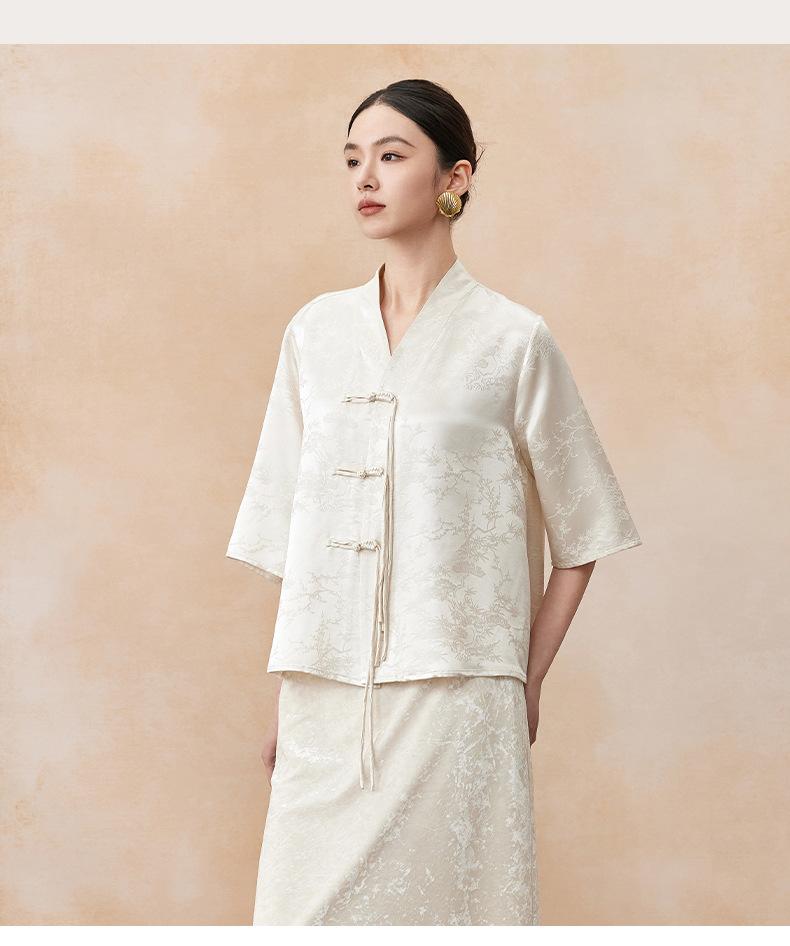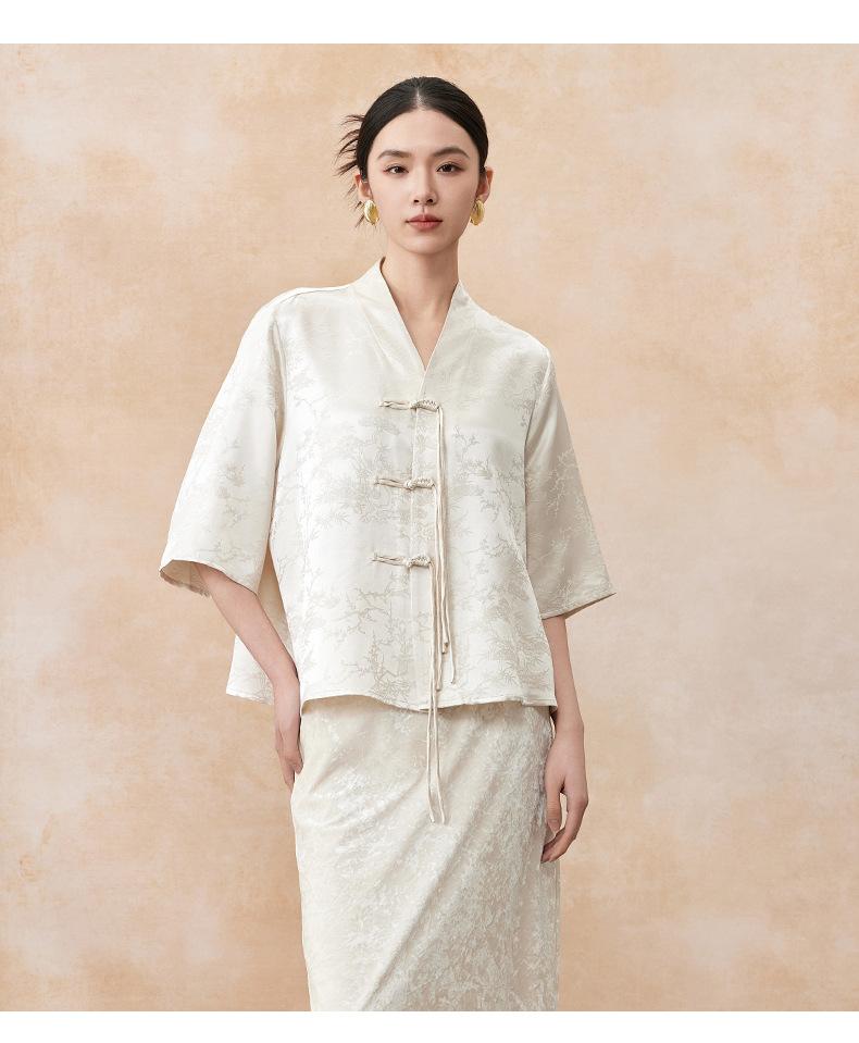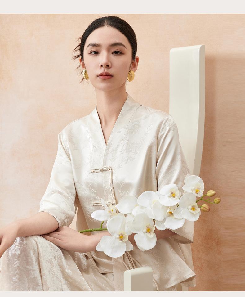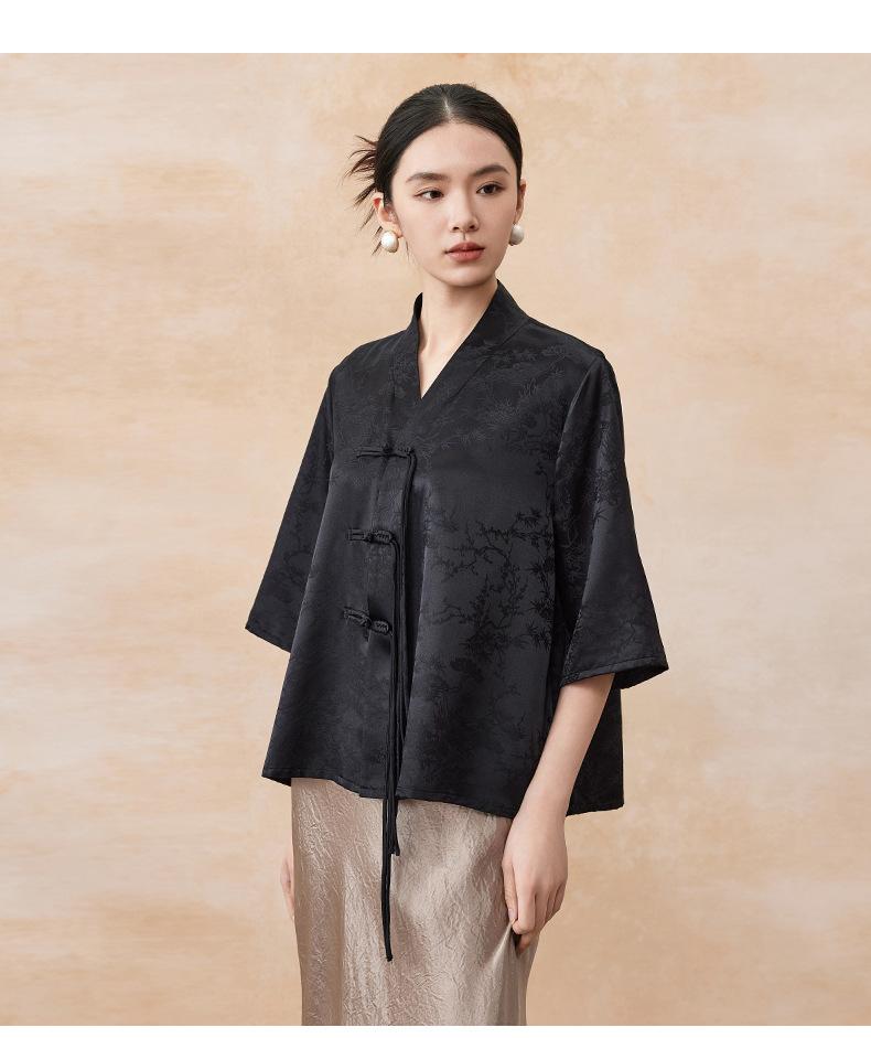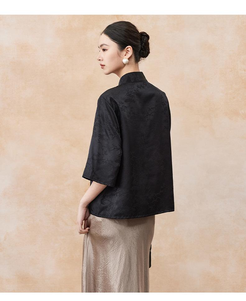 Blusas Chinoiserie Nuevas para Mujer Verano Estilo Nacional Abotonada Manga Tres Cuartos Camisa Top de Seda de 28 mm Camisa de Seda de Morera