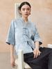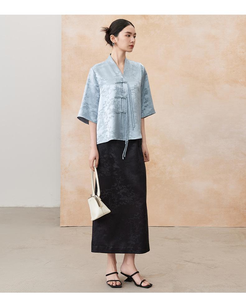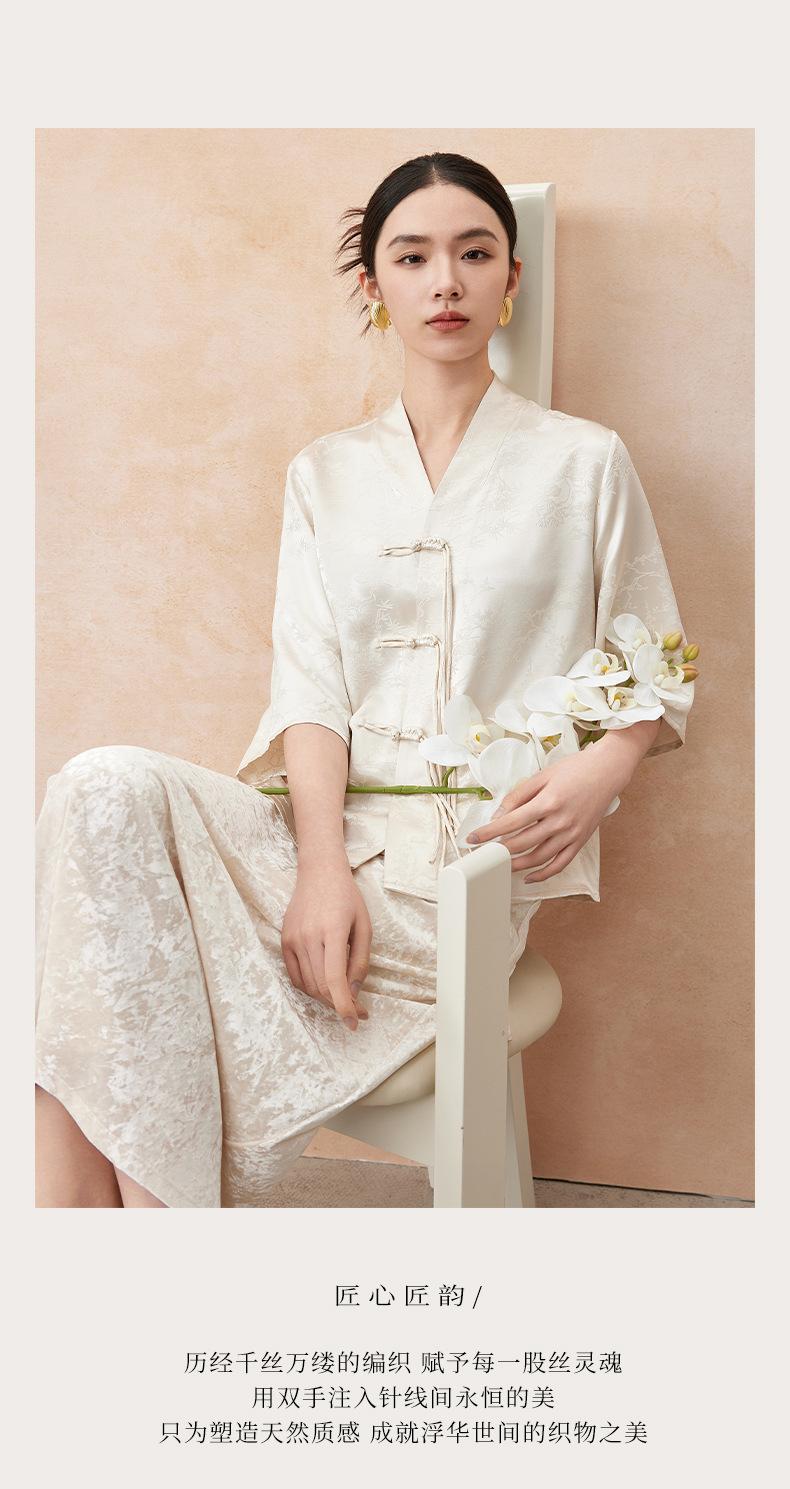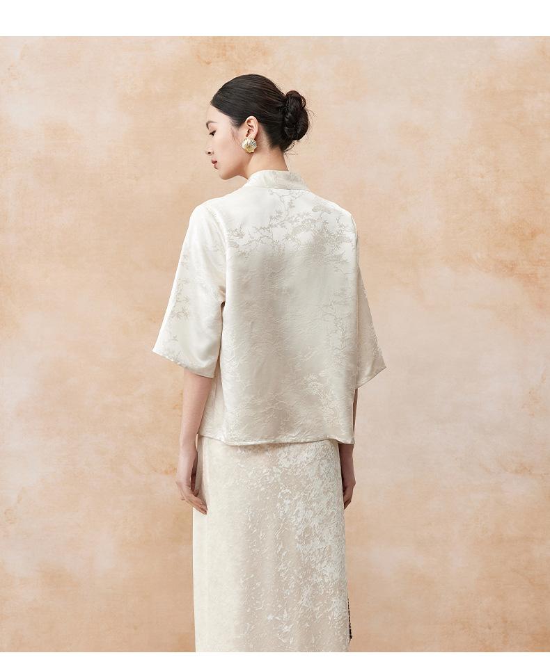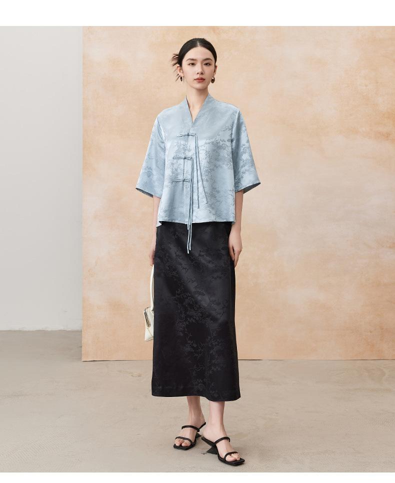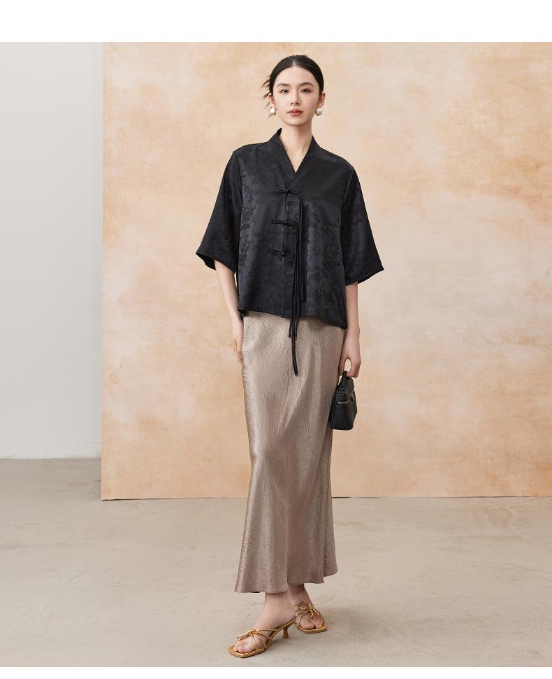 Blusas Chinoiserie Nuevas para Mujer Verano Estilo Nacional Abotonada Manga Tres Cuartos Camisa Top de Seda de 28 mm Camisa de Seda de Morera