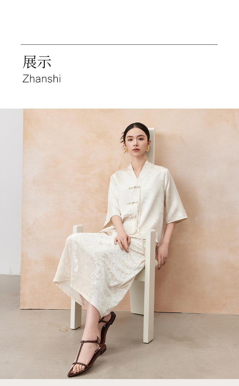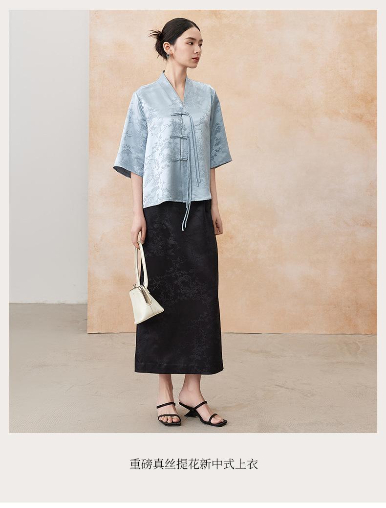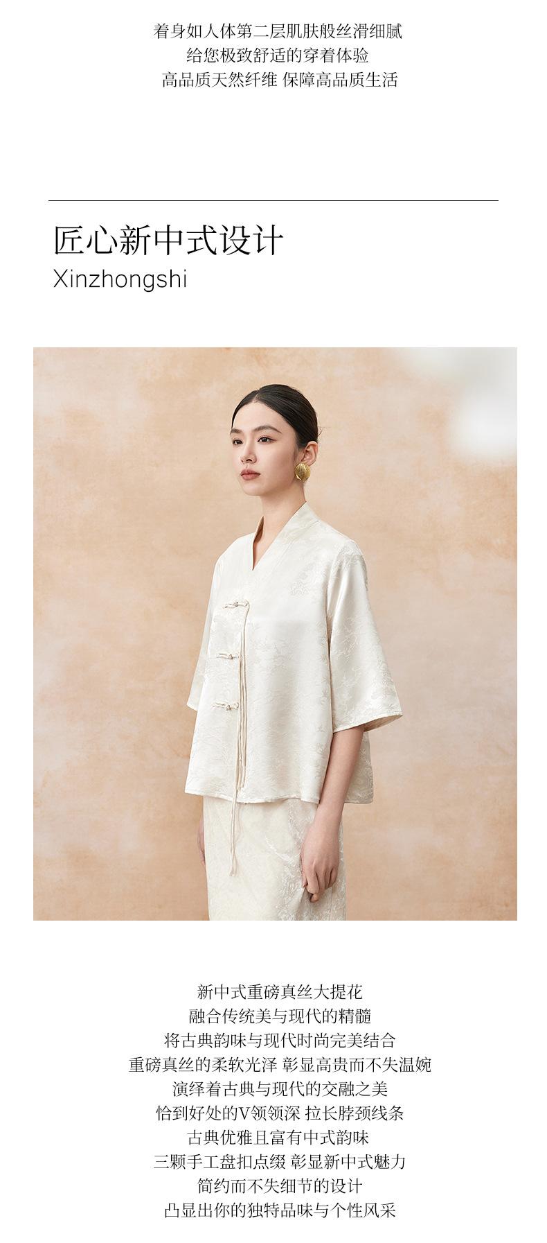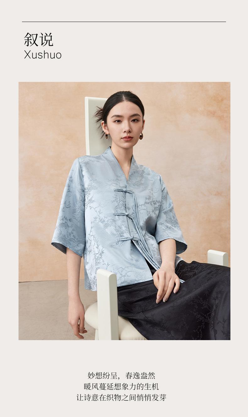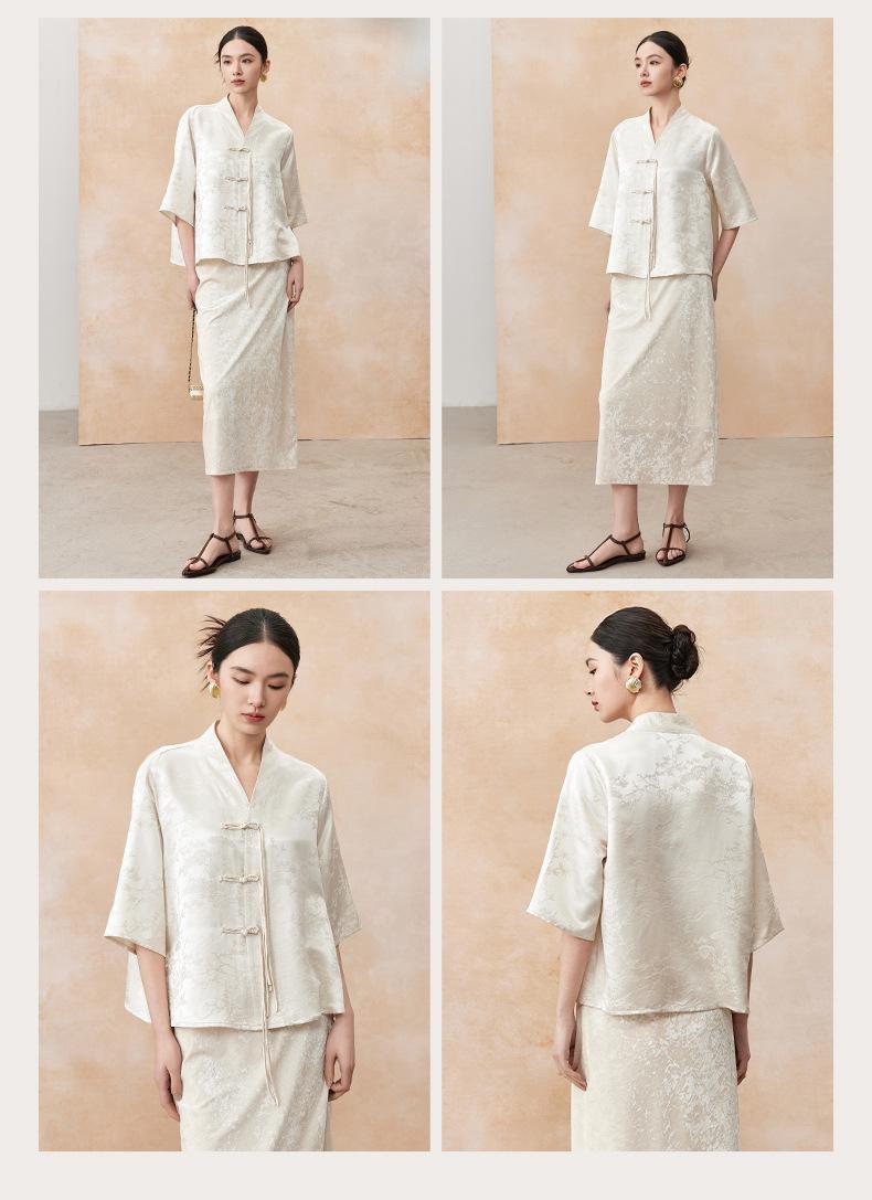Blusas Chinoiserie Nuevas para Mujer Verano Estilo Nacional Abotonada Manga Tres Cuartos Camisa Top de Seda de 28 mm Camisa de Seda de Morera