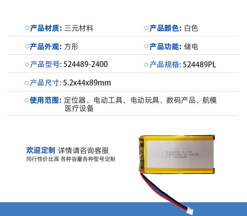 Batería de Litio Núcleo 524489/2400Mah de Fábrica Máquina de Educación Temprana Localizador Instrumento de Belleza Navegador Batería de Polímero de Litio