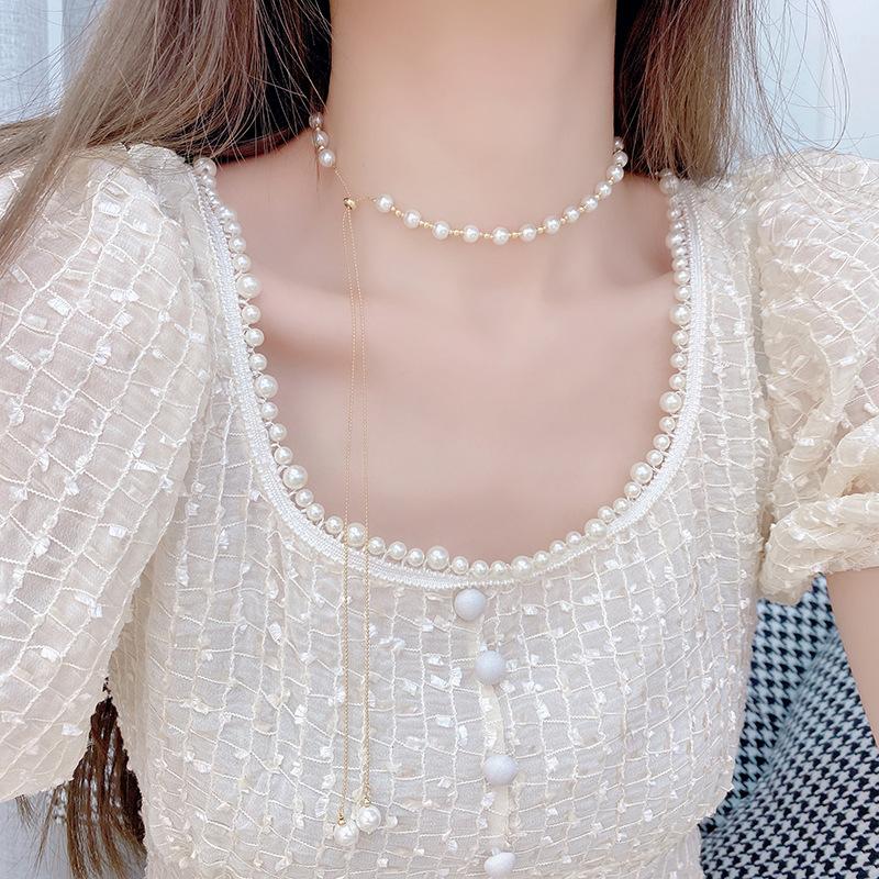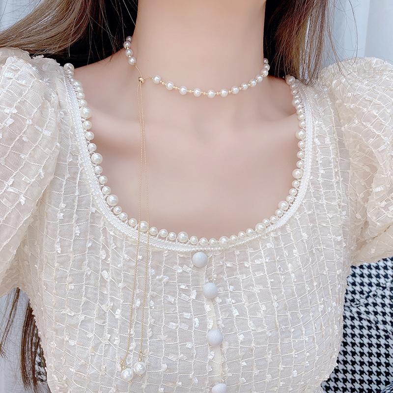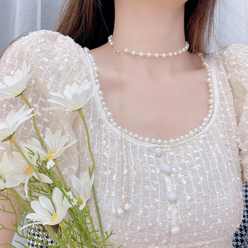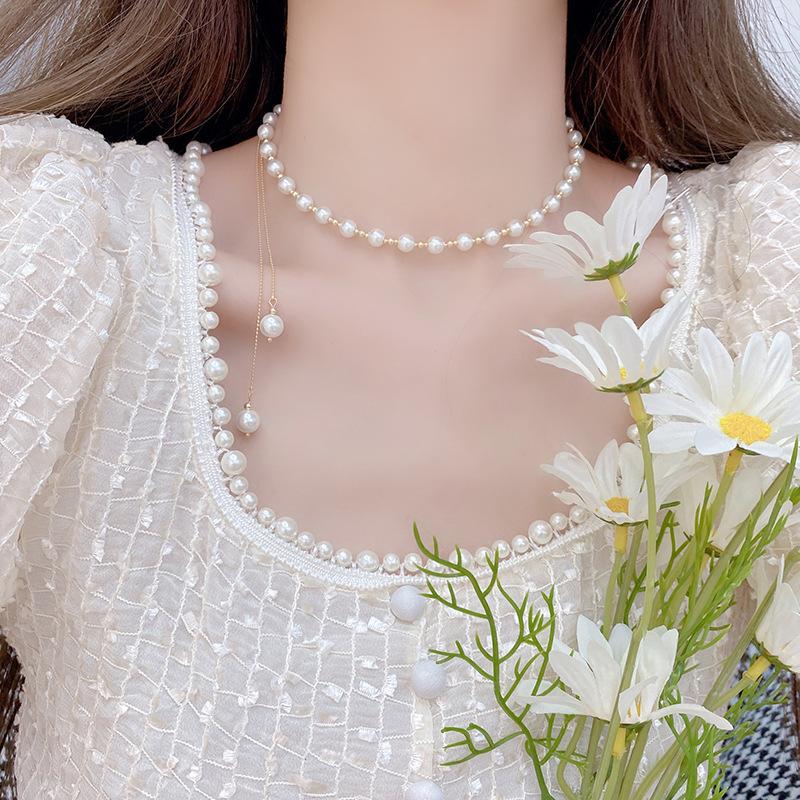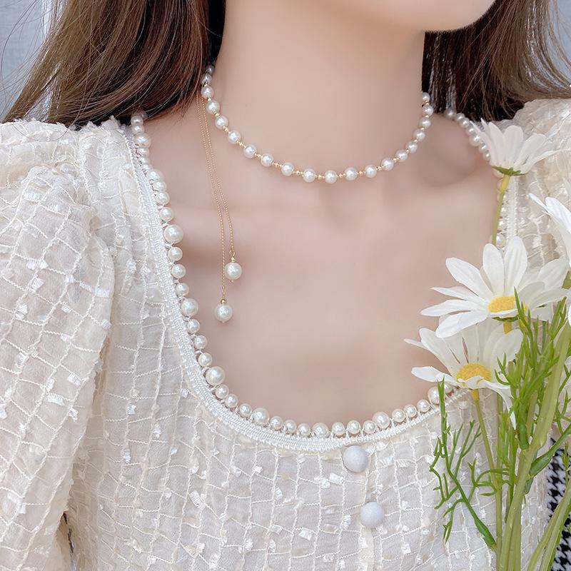 Cadena de clavícula para mujer, estilo francés, estilo retro Hepburn, accesorios, diseño de nicho, collar de perlas extraíbles Sense 2021